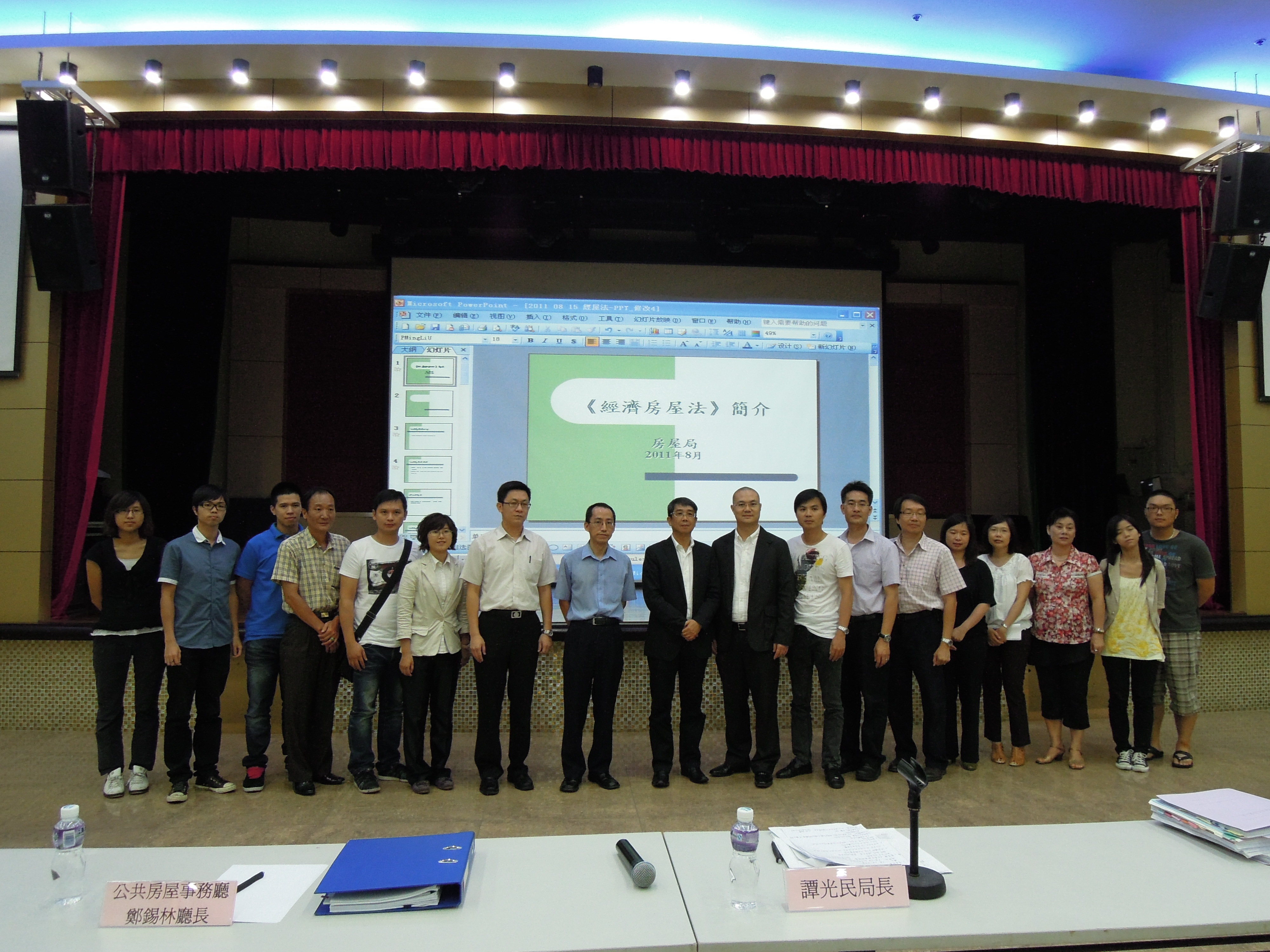 房屋局局長譚光民、公共房屋事務廳廳長鄭錫林及法律事務處處長任利凌於8月18日下午在民眾建澳聯盟綜合活動服務中心向其會員介紹法案內容,並解答與會者提問。