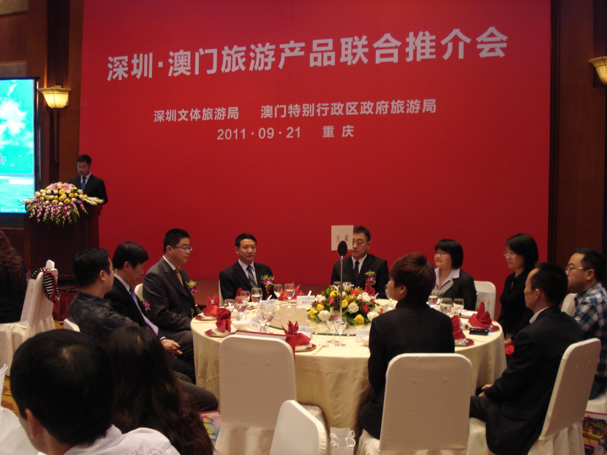 深圳文體旅遊局和澳門特別行政區政府旅遊局代表前往重慶,推介兩地最新的旅遊資源及旅遊路線,促進深圳、澳門、重慶的旅遊區域合作,推動三地旅遊業界的交流。