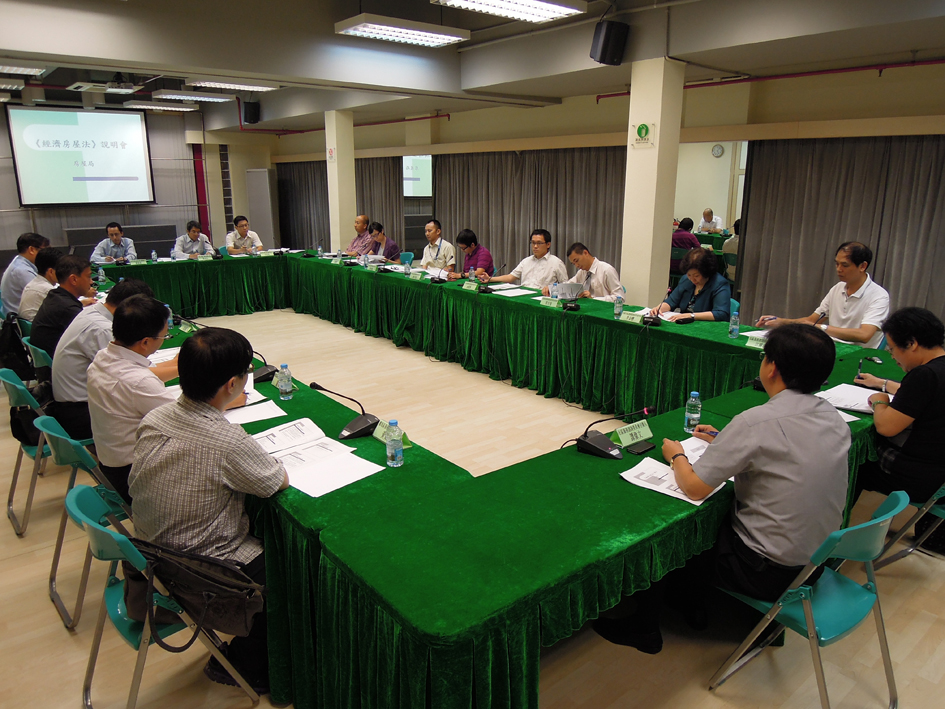 房屋局局長譚光民、公共房屋事務廳廳長鄭錫林及法律事務處處長任利凌於9月14日傍晚在營地活動中心向北區、中區及離島區社區服務諮詢委員會介紹《經濟房屋法》,並解答與會者提問,出席包括北區、中區及離島區社區服務諮詢委員會召集人譚偉文、北區社區服務諮詢委員會副召集人吳素寬,及社區服務諮詢委員會委員林宇滔、余韶洲等。