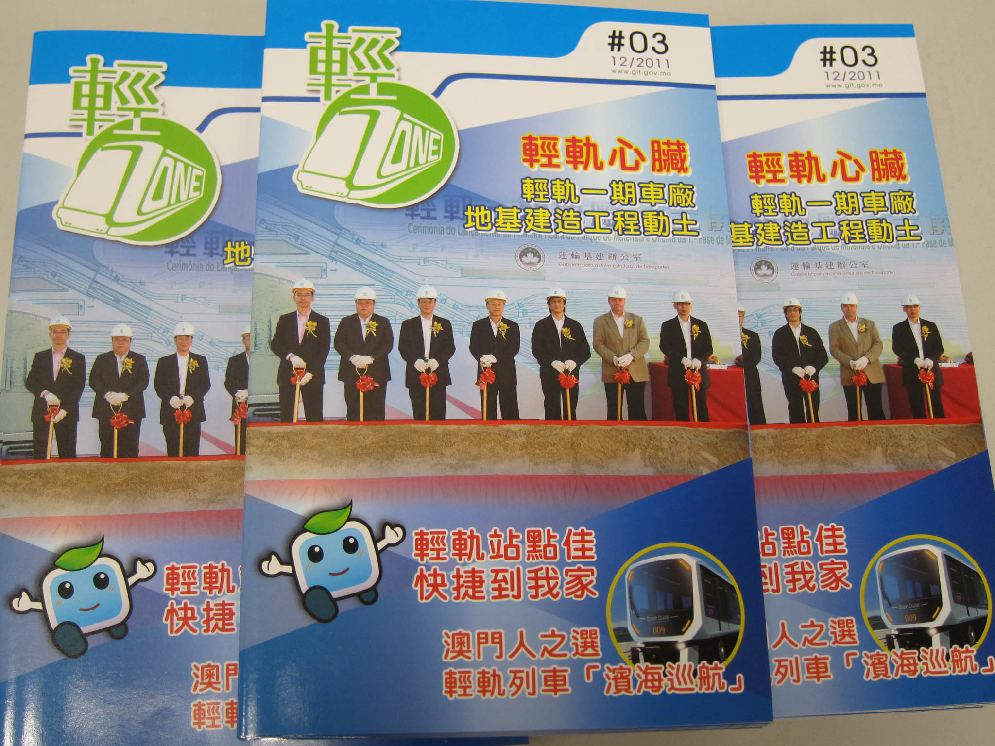 澳門輕軌季刊《輕ZONE》第三期已經出版,市民即日起可於指定的政府部門、公共圖書館、社區服務團體和大專院校等站點免費索取,或可登入運輸基建辦公室網站瀏覽及下載。