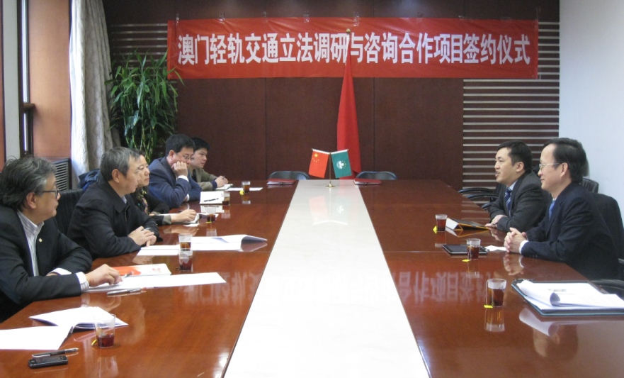 為加強本澳與內地在軌道交通法制上的銜接與合作,運輸基建辦公室在《澳門輕軌項目與內地建立技術援助合作備忘錄》框架下,與中國城市規劃設計研究院簽署《澳門輕軌交通立法調研與諮詢合作協議書》,落實輕軌法律法規的調研工作。合作協議不但加強兩地的軌道項目交流,也直接增加了本地學術單位參與輕軌項目的機會。