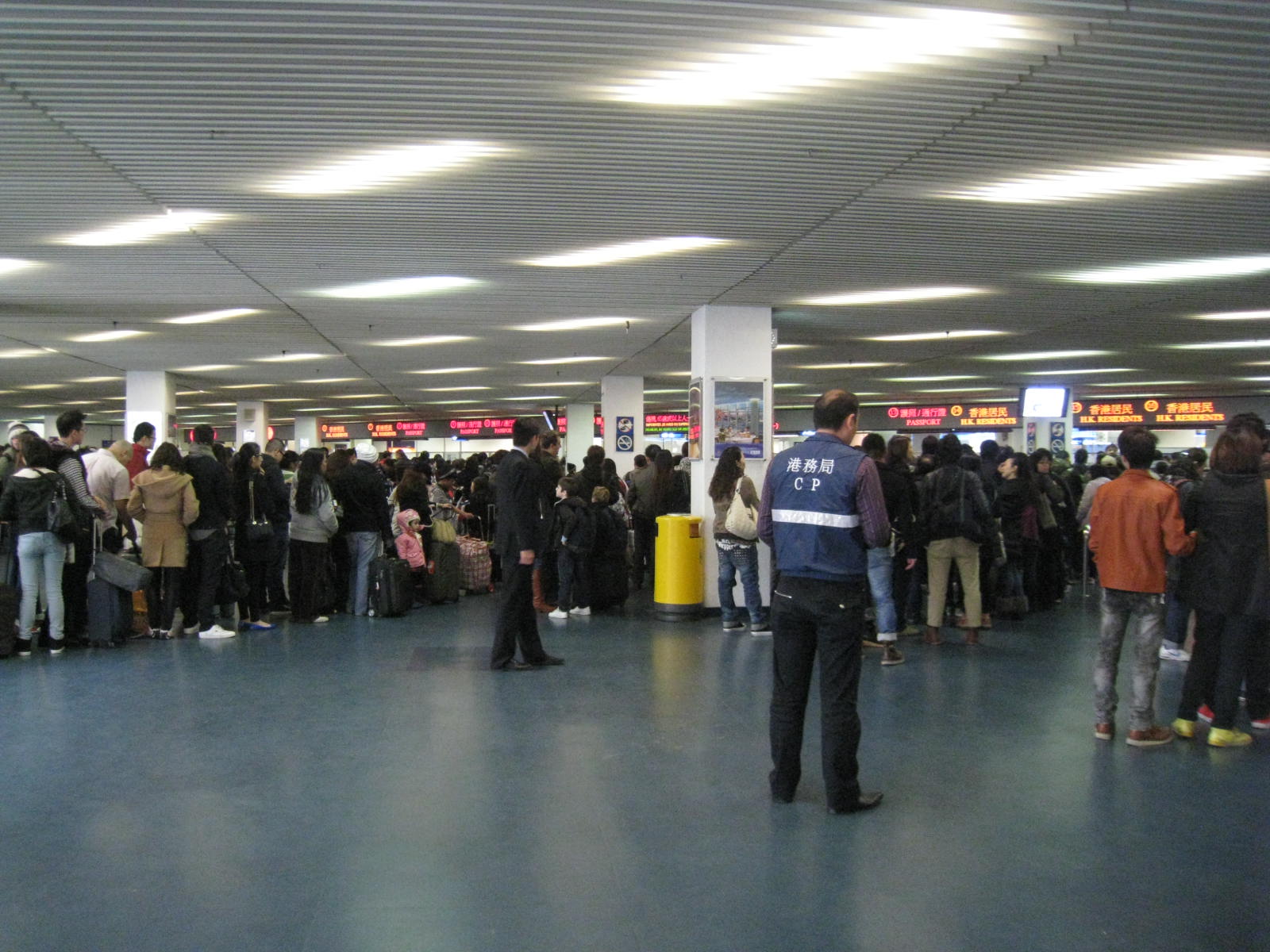 旅客等候驗證過關的時間與昨日相若,未因旅客人數增加而受影響。在人流高峰時段,持護照旅客最長等候時間約需1小時左右,而在非繁忙時段的等候時間則只需10至15分鐘。在繁忙時段,治安警察局出入境事務廳抽調人手增開驗證通道,有效縮短通關時間,協助疏導旅客。
