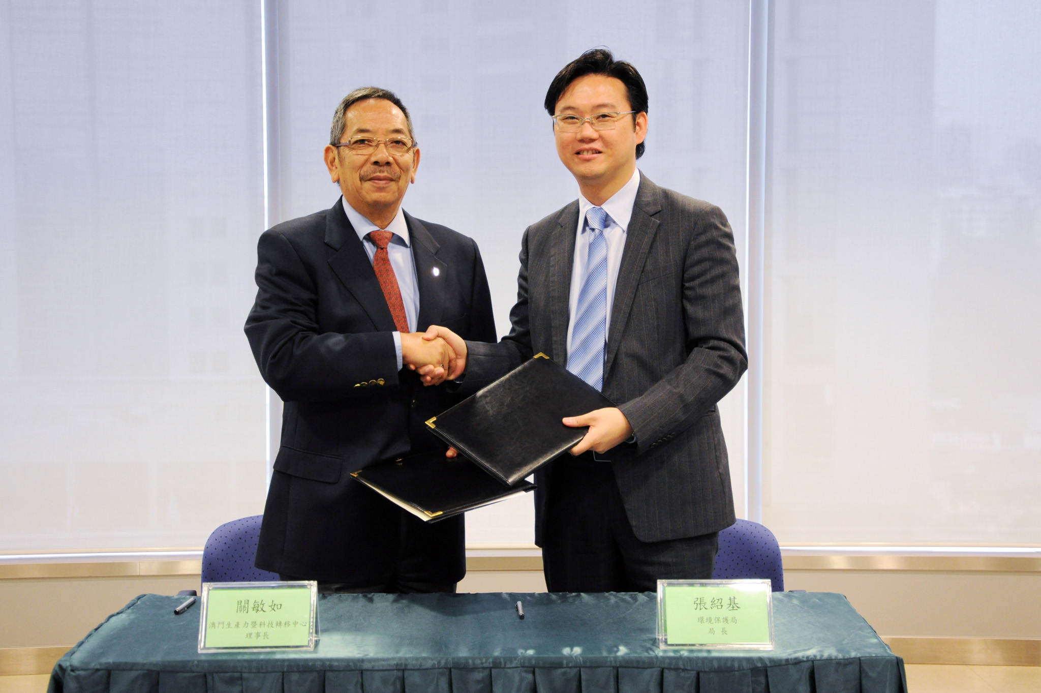 有關協議書由環境保護局張紹基局長以及澳門生產力暨科技轉移中心關敏如理事長共同簽署。是項協議書的合作內容涉及提供環境保護及環境管理方面的培訓、技術及顧問工作,目的旨在提升社會整體的環保意識、促進環保產業的發展、協助引進環保產品及技術等。