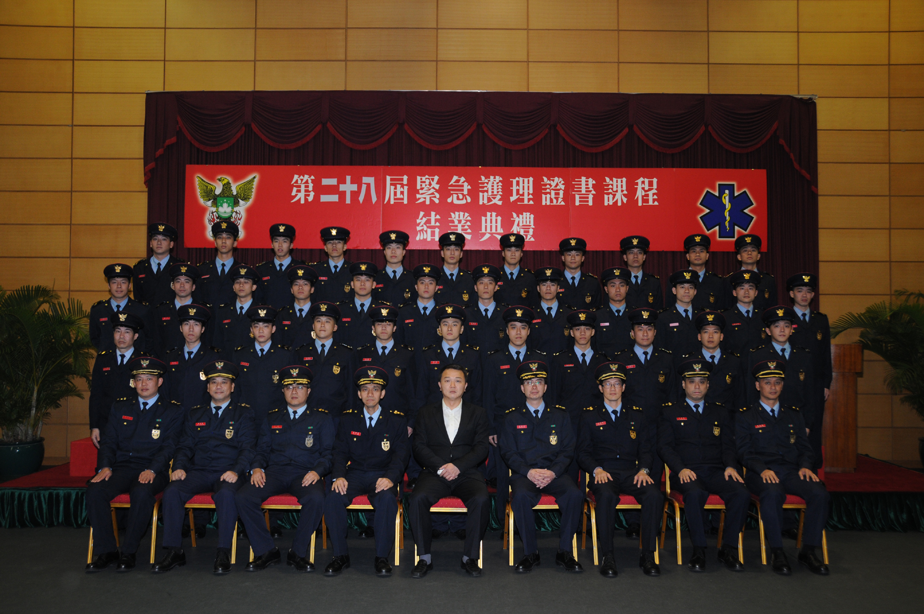 消防局開辦之第28屆緊急護理證書課程,於本年12月28日結業,在當天下午假消防局總部舉行了結業儀式,課程開展至今,共培訓了超過590名具備院前緊急護理專業資格之救護員,為本澳市民提供服務。