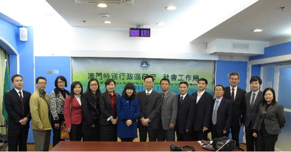 考察團一行九人在團長四川省民政廳副廳長陳克福帶領下,與社會工作局副局長黃艷梅等人,就民生福利政策及管理等問題進行會議,並在局方的安排下,分別到訪了澳門街坊會聯合總會頤駿中心、澳門明愛聖瑪嘉烈中心、婦聯托兒所、澳門扶康會寶翠中心及澳門聖公會北區青年服務隊等五個機構,期間受到各機構負責人及員工的熱烈歡迎和熱情接待。