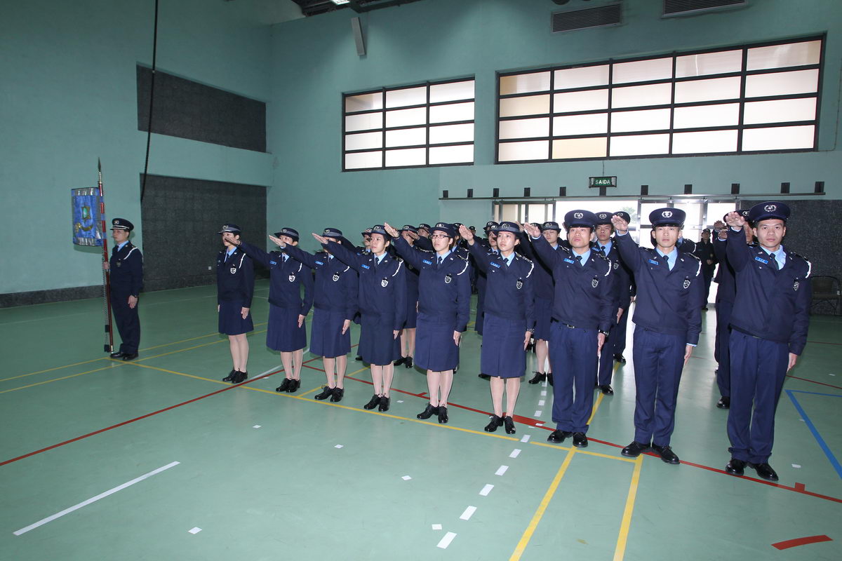 今天(1月26日)上午十二時,在治安警察局特警隊大樓內舉行警員就職典禮。儀式由治安警察局副局長黎錦權副警務總監主持。出席儀式的還有局內各部門的廳長及負責人,為新警員戴上襟章。