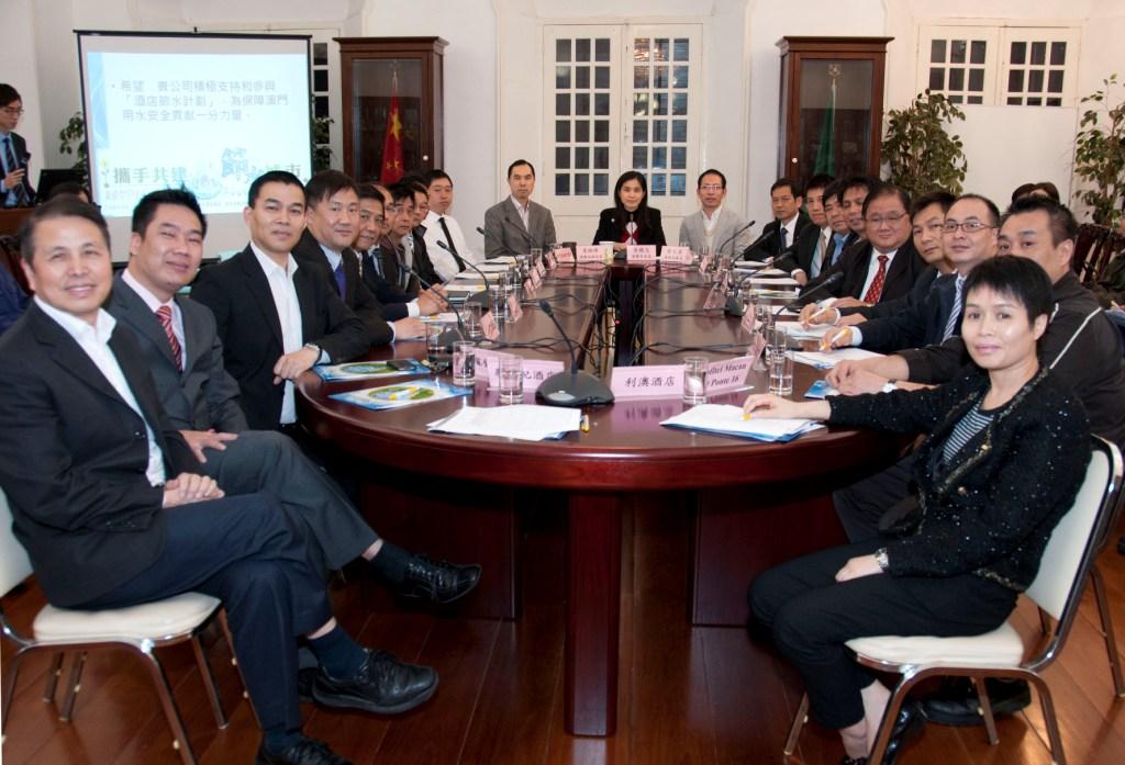 會議在港務局大樓舉行,並由節水小組組長、港務局局長黃穗文主持。黃穗文在會上介紹了去冬今春的鹹潮情況,並指出隨著本澳旅遊業的發展,本澳旅客人數不斷上升,本澳酒店業用水量的增長速度也相應提高。