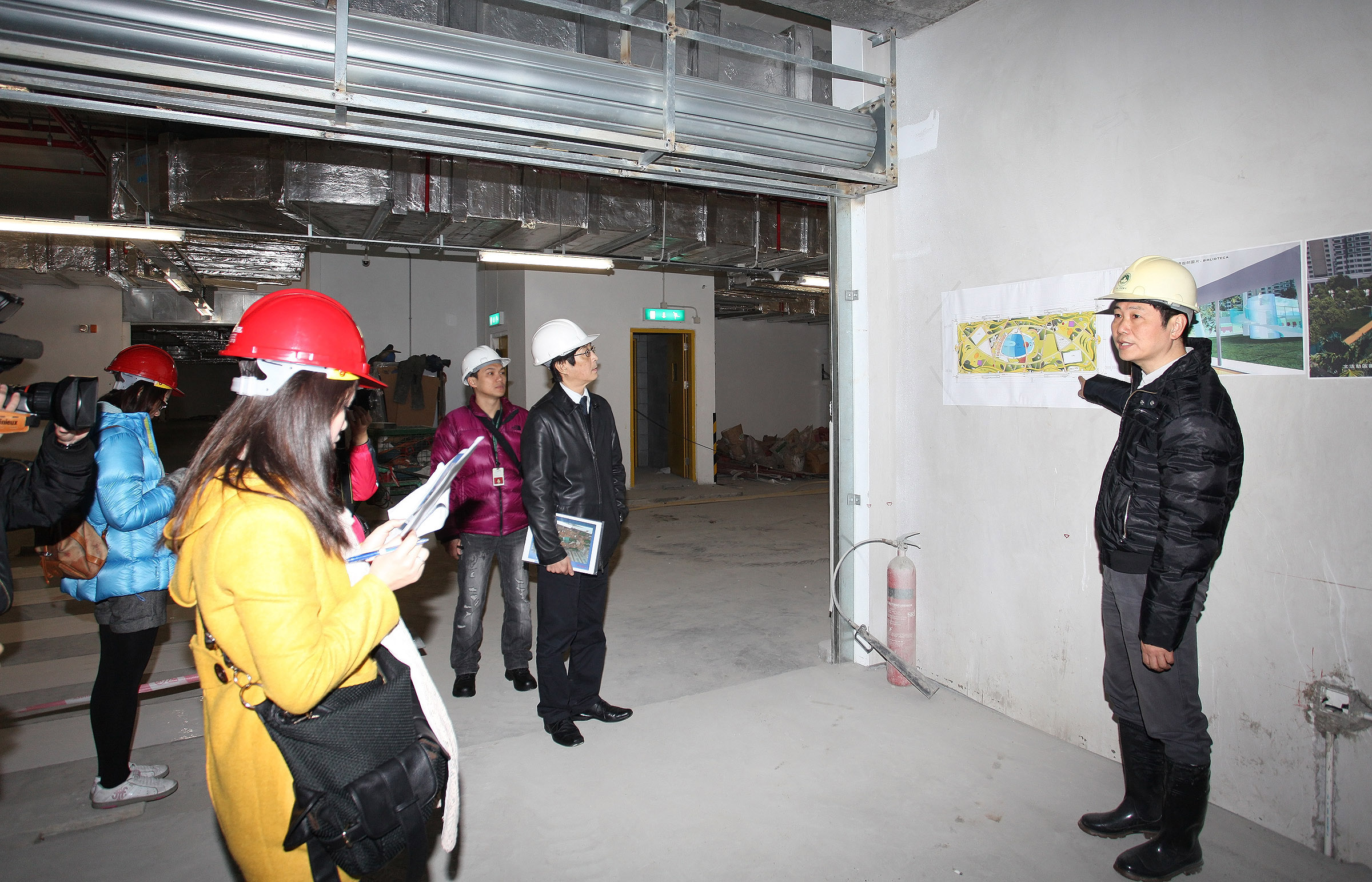 地下兩層停車場主體結構工程於去年完成,停車場各項設施近日已完成安裝,包括消防系統、照明系統、通風系統、監控系統和收費系統等,工程人員現正進行各項設施的測試,以及公園設施的佈置和綠化工作。土地工務運輸局局長賈利安、副局長劉振滄、基礎建設廳代廳長郭子昌及相關工程師等今日(2月29日)早上視察地盤,了解施工進度。