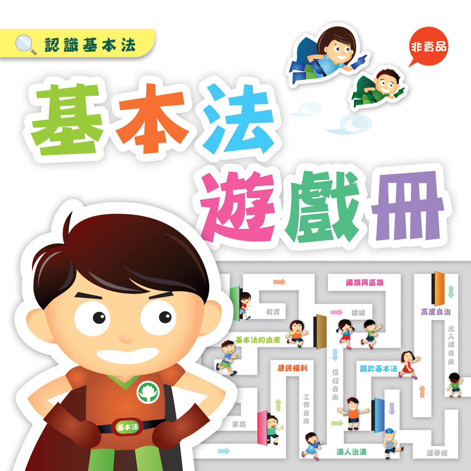 本遊戲冊的特色是透過填色、繪畫、迷宮遊戲等方式向兒童介紹基本法的由來、國旗與區旗、居民權利(選舉權、出入境自由、信仰自由、工作自由等)、澳人治澳、高度自治等概念。適合五至十歲的小朋友閱讀,亦適合家長和子女進行親子活動,一起認識基本法。