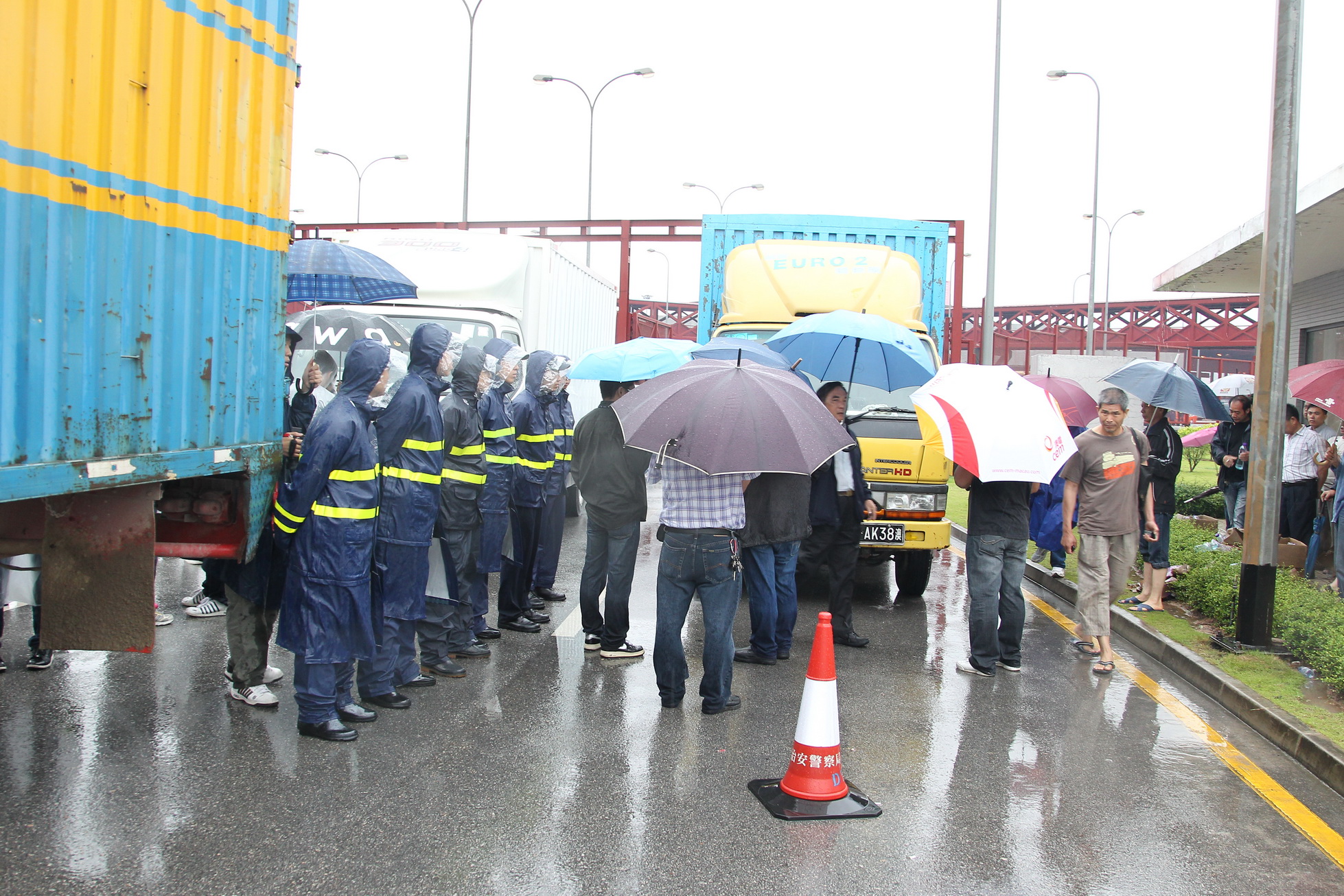本年四月十六日上午八時許,澳門跨境汽車貨運從業員協會發起車輛罷駛行動,約80輛重型貨車等駛至路氹邊檢站集結,堵塞了邊檢站管制區門口5條出境車道中的4條,以及3條入境車道中的2條,嚴重阻礙交通。