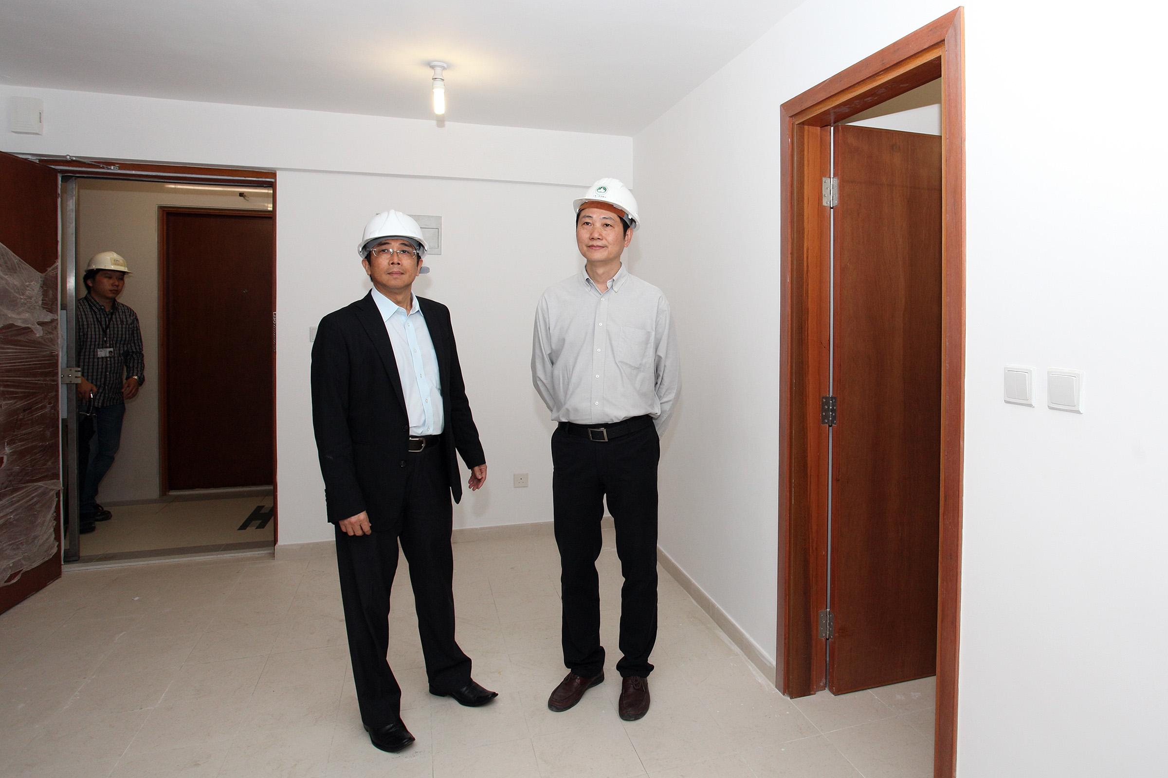房屋局局長譚光民及土地工務運輸局副局長劉振滄等今日(4月19日)下午視察俾利喇街公屋項目地盤,了解工程施工進度。