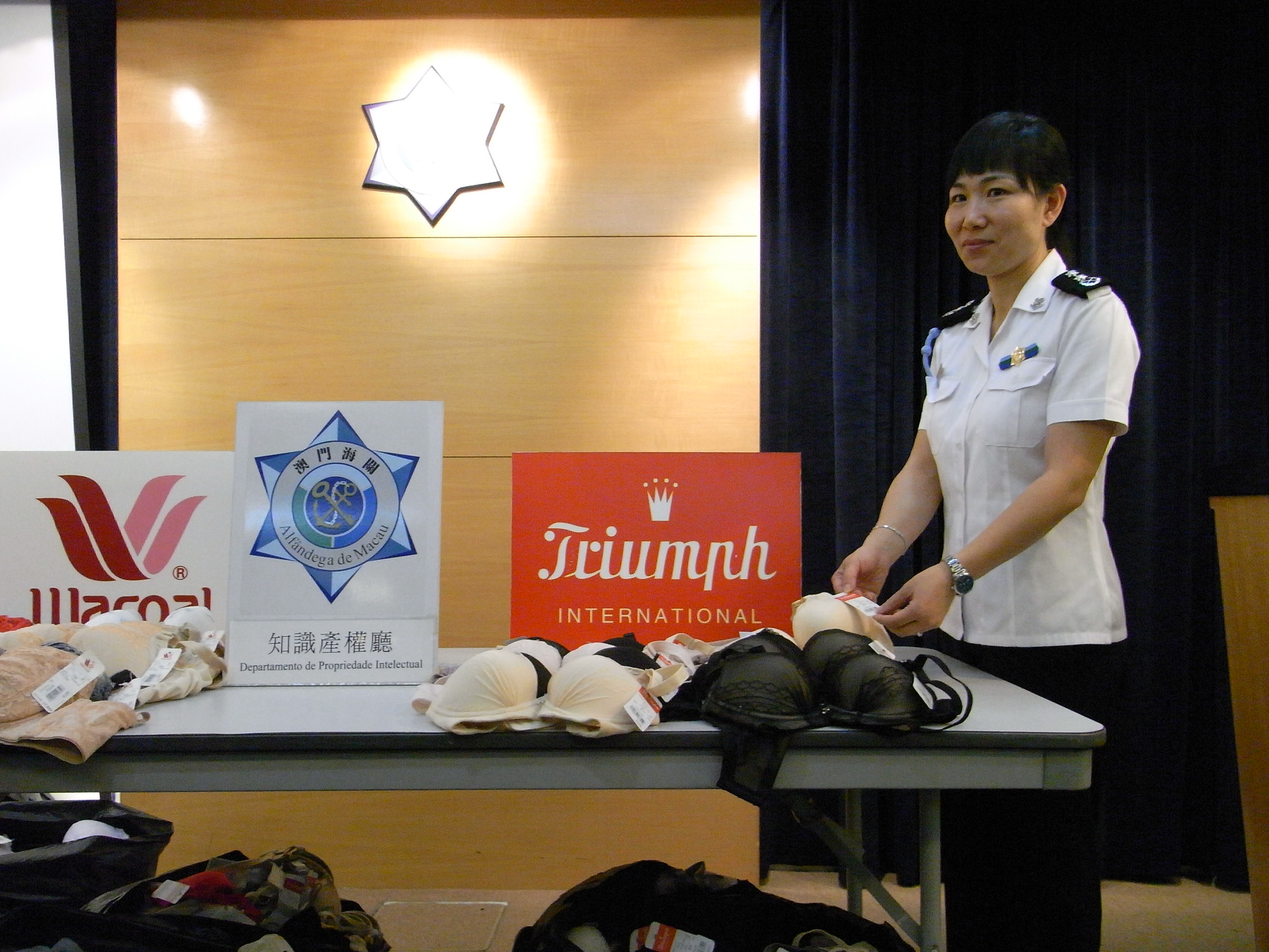 於本月八日,海關偵查人員對上述店舖採取行動,並獲得有關品牌權利人代表協助鑑定舉證工作。在涉案店舖內查獲偽冒“Wacoal”及 “Triumph”品牌之女性胸圍及內褲等合共一千六百一十三件,市值超過澳門幣三十八萬元。據初步調查顯示,有關侵權物品經從外地購入,胸圍入貨價格為三十元至六十元澳門幣不等,出售價格約為百多元至五百多元澳門幣不等,內褲入貨價格約為十元至二十元,出售價格約為三十五元至五十五元澳門幣不等,而案中被扣押的侵權物品經權利人確定後發現一些原品牌根本並未生產有關款式。