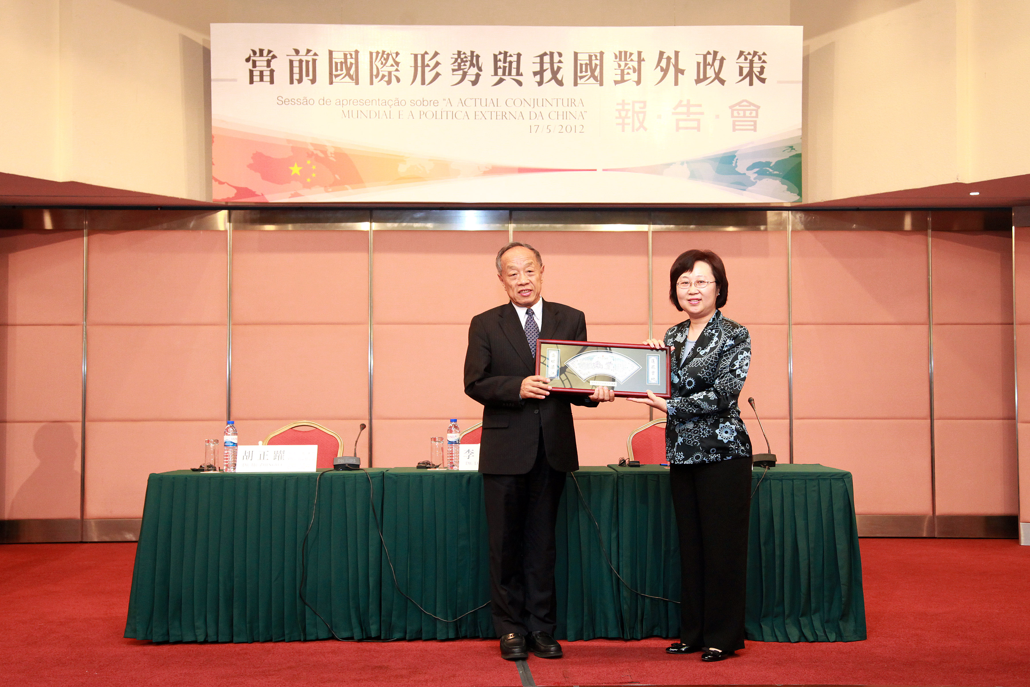 應邀訪問澳門特區的中國人民外交學會名譽會長李肇星於今(17)日在澳門世界貿易中心爲澳門特區政府公務人員作“國際形勢與我國對外政策”報告,並由外交部駐澳門特別行政區胡正躍特派員及行政法務司司長陳麗敏出席主禮。