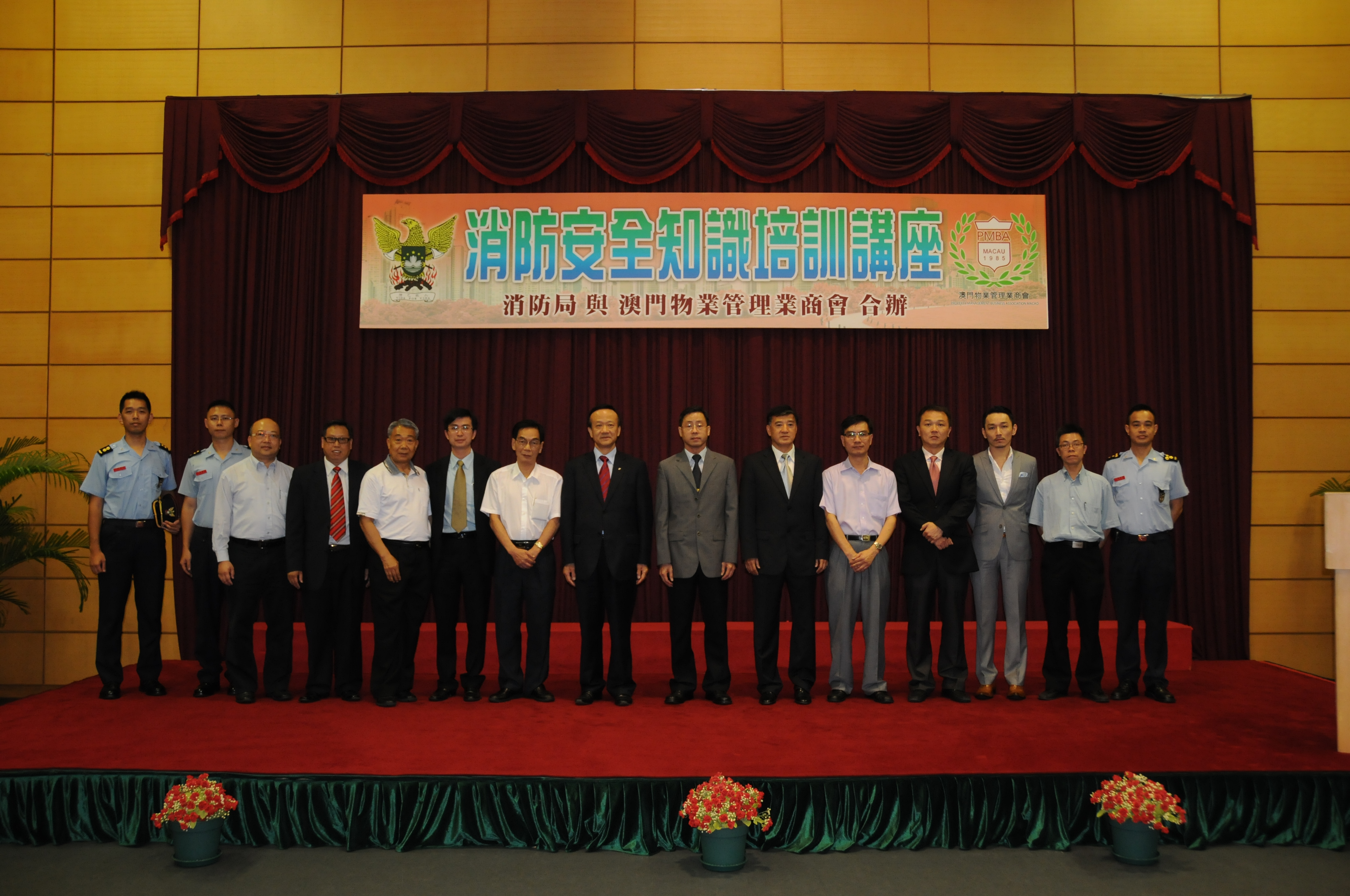 出席是次講座的主禮嘉賓包括消防局局長馬耀榮消防總監、澳門物業管理業商會會長劉藝良先生、澳門街坊會聯合總會副理事長兼大廈工作委員會主任黃祖添先生、大廈管理資源中心主任陳溥森先生等;消防局向出席商會及坊會代表頒發證明書,各方並表示將繼續加強合作及合辦同類型課程,以提昇管理從業員防火安全意識,保障居民生命財產,營造良好安全環境。