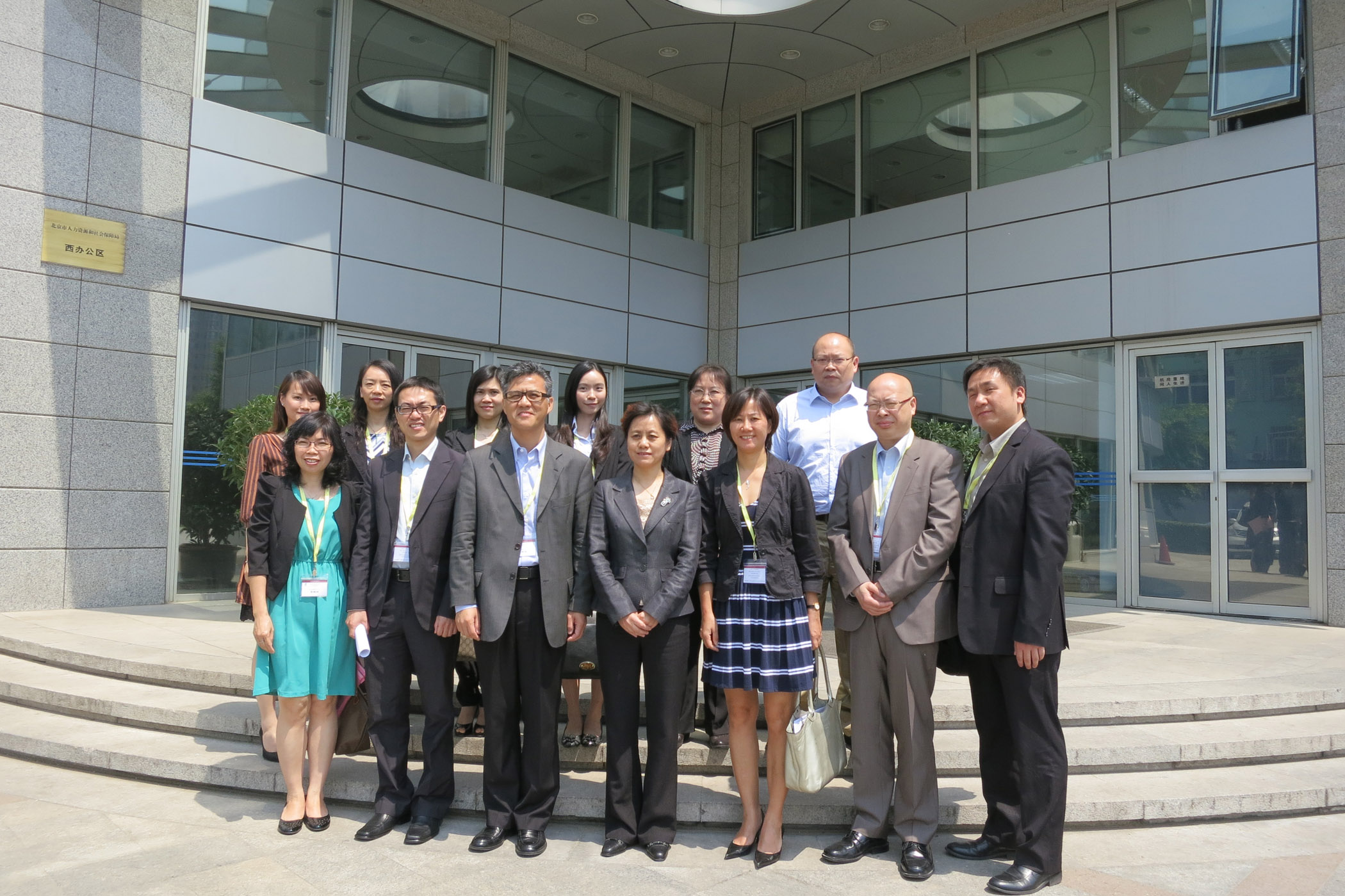 一行人於5月7日上午首先拜訪人社部,與社會保險事業管理中心副主任除延君等會面。人社部代表向考察團介紹內地社會保障制度概況。有關制度由基本養老保險、基本醫療保險、失業保險、工傷管理制度及生育管理制度組成,其中養老保險分為城鎮基本保險、新型農村養老保險及城鎮居民養老保險,人社部預計今年可實現基本養老保險全覆蓋的目的。而面對人口老化,未來除堅持實施「保基本、廣覆蓋、多層次、可持續」的養老保障制度外,亦會加強資金儲備及考慮延後退休年齡。關於內地與本澳社會保障體系銜接方面,人社部認為可先統一基本原則,並以合作較緊密的廣東省作示範,再按各地情況研究可行方案,日後雙方可就有關議題保持交流及討論。