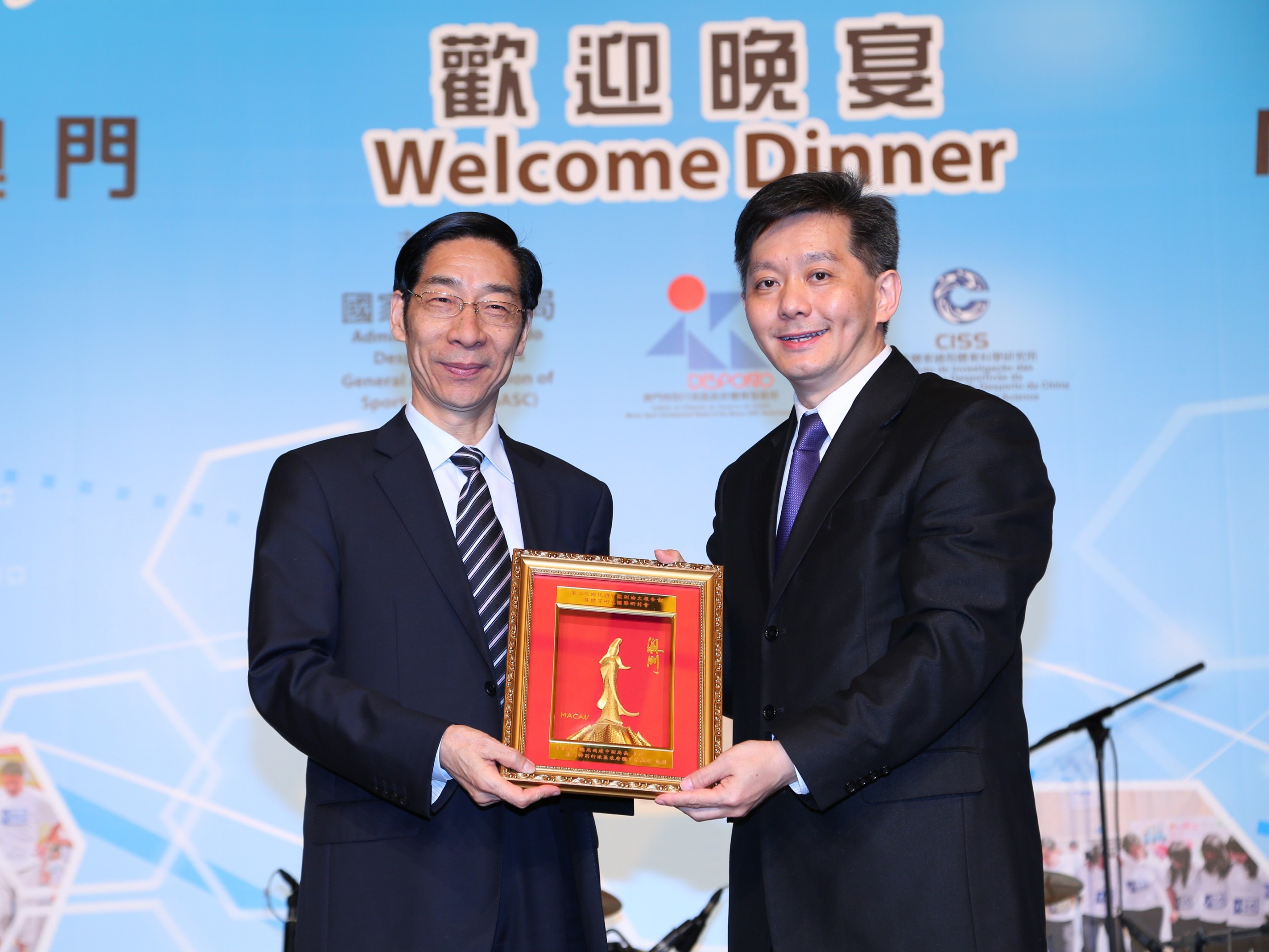 昨天(6月2日)晚上7時,本次會議的歡迎晚宴假澳門漁人碼頭會議展覽中心舉行,體育發展局黃有力局長在晚宴上致歡迎詞。他在致詞時表示,這次會議有來自海內外的學者齊聚澳門,共同探討體質與健康促進的研究課題,相信對了解各地區有關體質研究的狀況與進展,提昇社會對市民體質健康的關注,都將帶來正面的影響。其後,體育發展局黃有力局長及戴祖義副局長分別與國家體育總局馮建中副局長、體育科學研究所田野所長互相贈送了紀念品。另外,體育發展局潘永權副局長致送紀念品予協助澳門市民體質監測工作的相關機構代表,包括衛生局代表曹國希醫生、教育暨青年局龔志明代處長、社會工作局鄧詠詩處長、高等教育輔助辦公室黃月冰職務主管、澳門理工學院體育暨運動高等學校楊再淮校長、澳門體育暨運動科學學會梁少培會長。而出席歡迎晚宴的嘉賓還有澳門體育委員、海內外和澳門本地的所有與會人員超過300人,場面熱鬧。