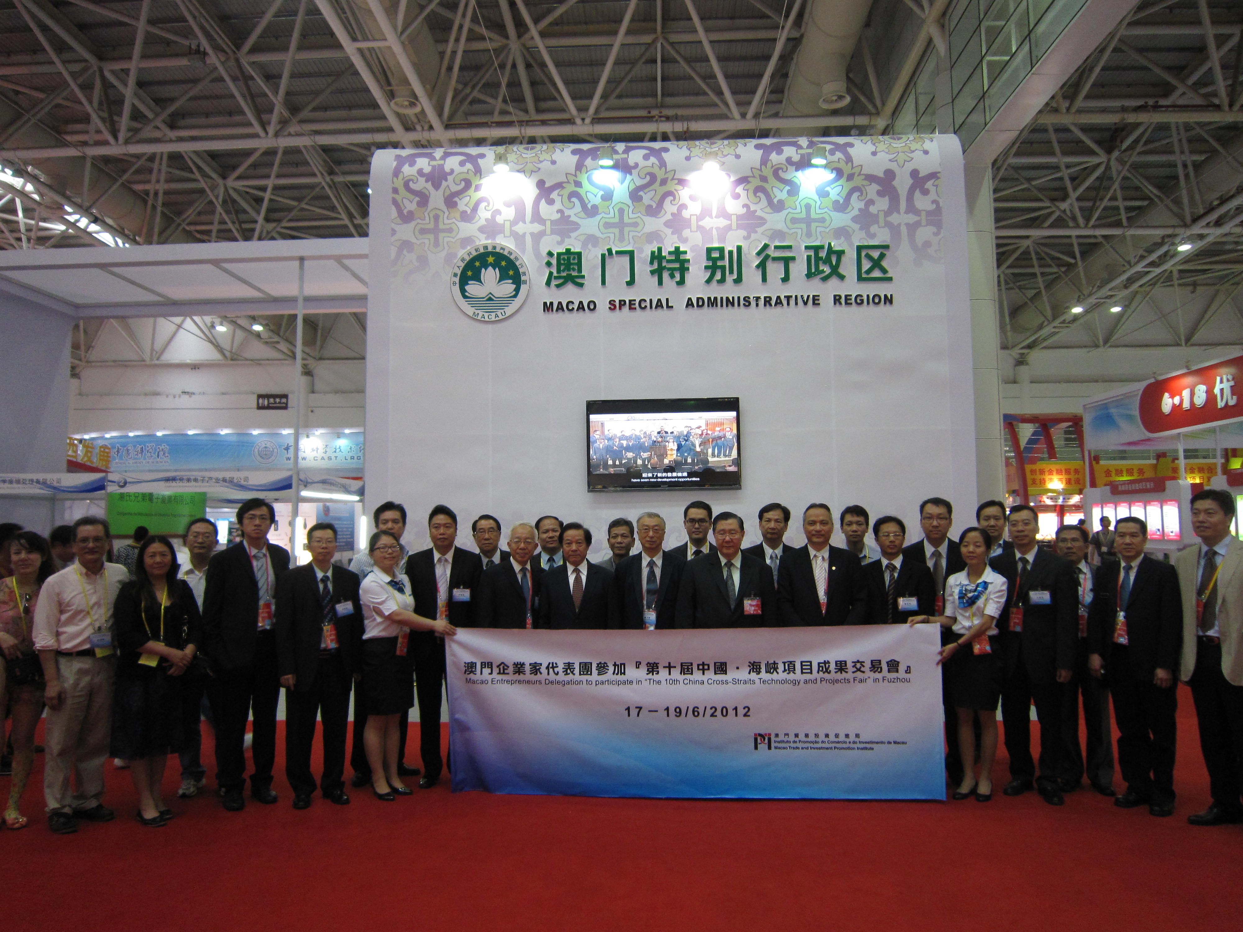 由中華人民共和國國家科學技術部、國家住房和城鄉建設部、國家教育部等多個機構、福建省人民政府及澳門特別行政區政府聯合主辦之『第十屆中國•海峽項目成果交易會』(簡稱『第十屆6‧18』),於本年六月十八至廿二日在“福州海峽國際會展中心”舉行。貿促局聯同澳門生產力暨科技轉移中心,於六月十七日至十九日,組織近五十人的代表團前往福州參會。