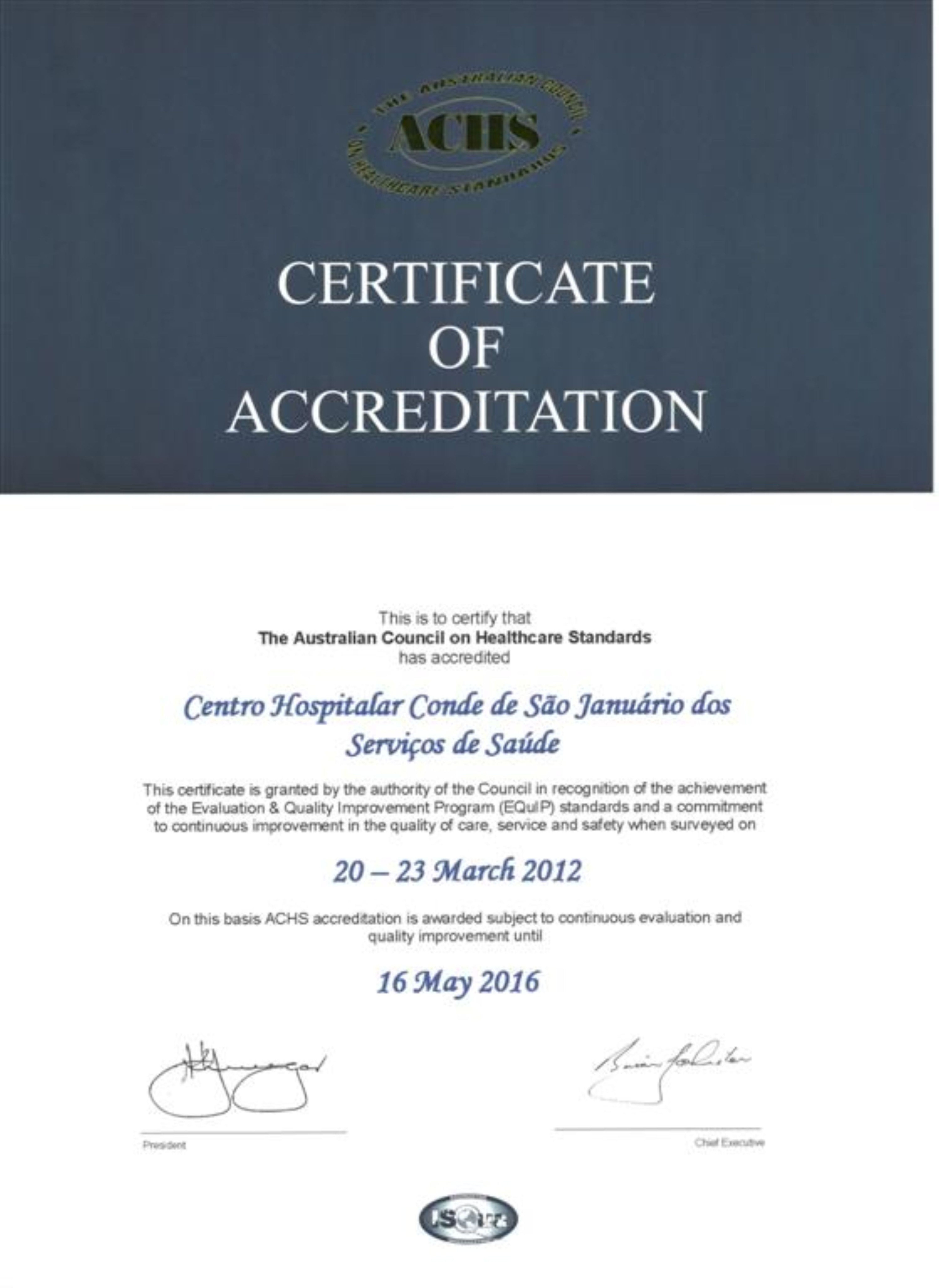 為提升醫療服務質素,優化醫院各項設施,使員工和病人擁有安全和舒適的環境,減低醫療事故的發生,仁伯爵綜合醫院委託澳洲醫療服務標準委員會(ACHS)於3月20至23日期間來澳,對醫院進行了認證評核的實地考察後,證實仁伯爵綜合醫院已達評估及質素改進標準大綱(EQuIP)的評核標準,並承諾持續不斷地改善醫療護理、服務的質素和安全性。澳洲醫療服務標準委員會於6月23日正式宣佈仁伯爵綜合醫院成功取得認證。衛生局陳惟蒨副局長、何鈺珊副局長等日前前往澳洲領取證書。