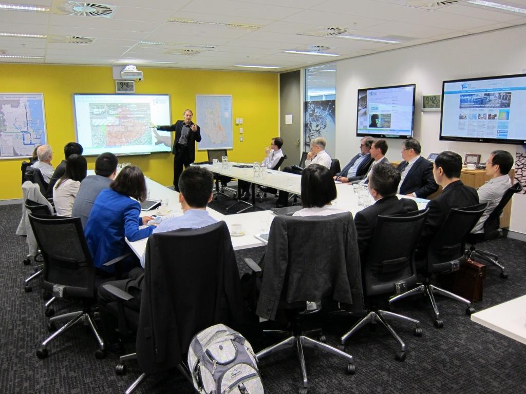 考察團首先到訪隸屬昆士蘭州政府的東南昆士蘭水公司(SEQ Water),得到該司行政總裁及營運部總監等人的熱情接待,向小組一行人介紹澳洲的水資源現狀、昆士蘭東南部的西走廊再生水計劃、水質監管機制、綜合水資源管理等情況,讓小組對澳洲的水資源及再生水規劃有進一步的了解。