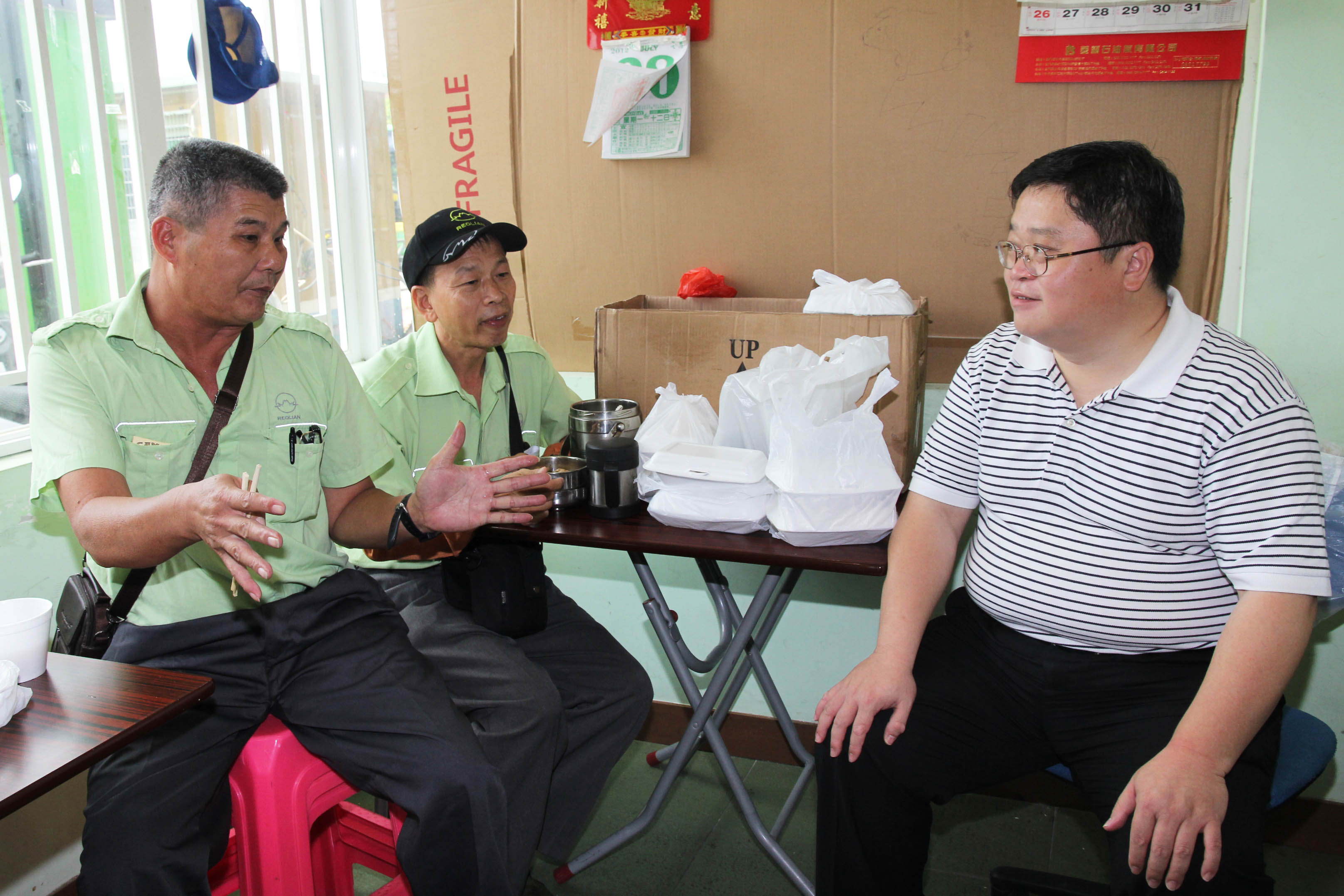 昨日(28日)上午,交通事務局局長汪雲、交通管理廳廳長羅誠智一行人先後前往了筷子基、青洲、關閘、順景廣場、東方明珠及媽閣等多個巴士總站,探訪三家巴士公司的司機、站長和從業人員,實地了解他們的工作環境和工作情況。汪雲又感謝巴士司機在颱風“韋森特”吹襲本澳期間,緊守崗位,全力做好疏導市民的工作,希望他們繼續努力,秉持專業的精神,為廣大的市民服務。