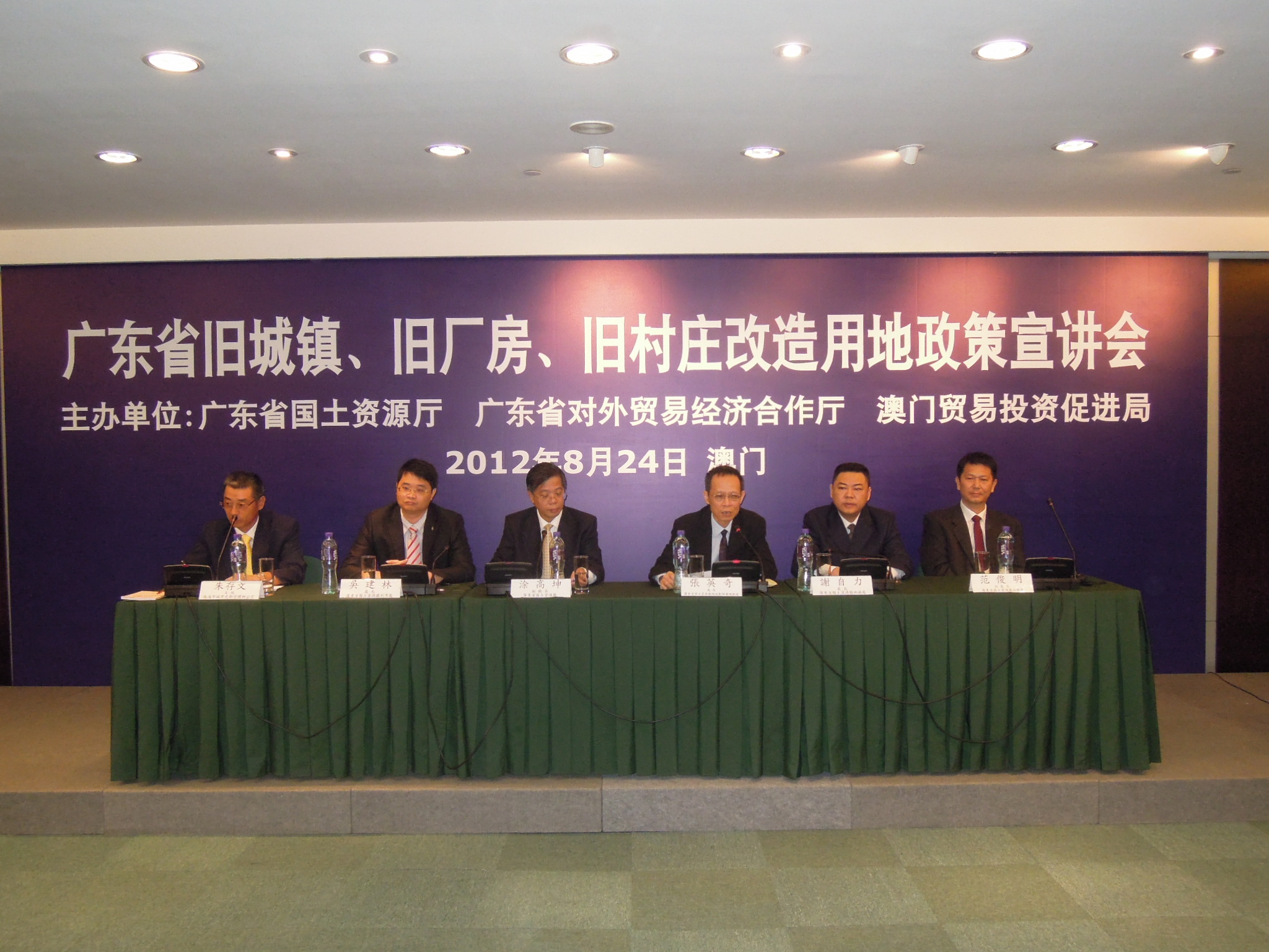 為應對國際經濟形勢變化給在粵澳門企業帶來的困難和挑戰,協助在粵澳門企業轉型升級,由廣東省國土資源廳、廣東省對外貿易經濟合作廳和澳門貿易投資促進局合辦之「廣東省舊城鎮、舊廠房、舊村莊改造用地政策宣講會」於2012年8月24日於貿促局屬下澳門商務促進中心舉行。