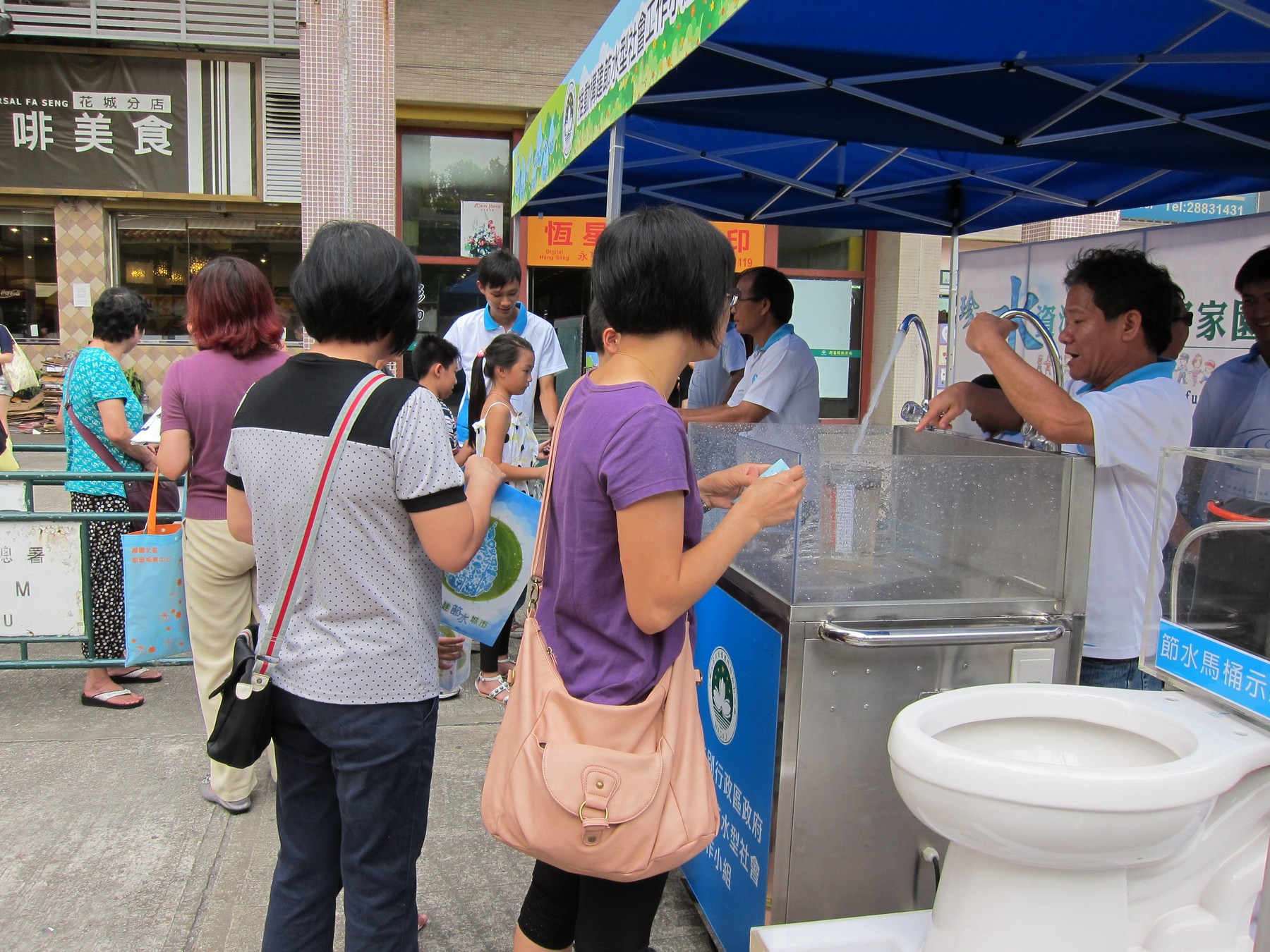 今日下午二時半至五時,小組在仔花城公園舉辦再生水社區巡迴推廣活動,現場設置多個以再生水為主題的攤位遊戲,並展出再生水資訊展板,內容包括再生水的處理過程、用途、其他國家使用再生水的例子等。此外,小組亦邀請了商戶展出市場上各種較常見的節水器具,更有專人講解和示範節水器具的安裝方法及展示節水效能,鼓勵市民使用節水器具,以提高節水器具在本澳的普及率。參與遊戲的市民均獲贈節水器具或精美紀念品。