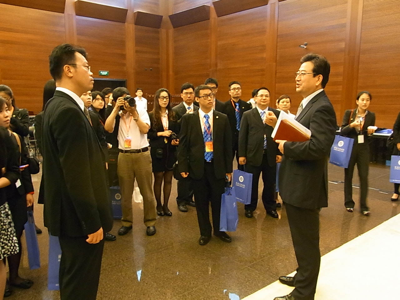 代表團參觀訪問了中國最高權力機關的全國人大,並在人民大會堂舉行了“2012年港澳與內地青年法律交流周活動啟動儀式”,以及得到了全國政協原副主席羅豪才、中國法學會副會長劉颺、司法部副部長張蘇軍、國務院港澳辦副主任華建的會見。之後,聽取中國社會科學院學部委員法學研究所所長李林講解中國的法律體系和法治文化,讓同學們加深了對中國法律的瞭解。