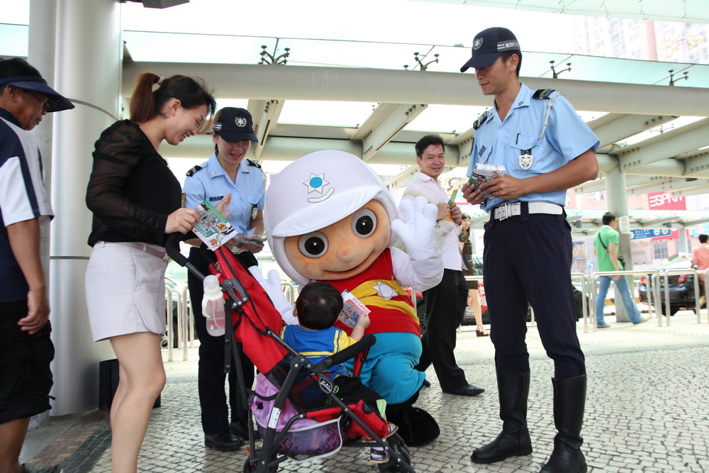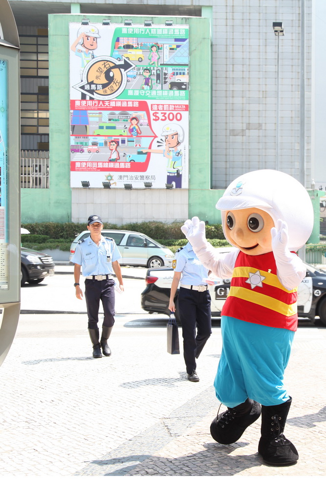 根據警方數據顯示,今年首8個月涉及行人違章過馬路而被檢控共有104宗,同比上升逾6%。內地旅客的交通事故,究其原因,主要是由於內地交通規範與本澳不同,最顯著的是澳門行車是左上右落而內地是右上左落,行人横過馬路時觀察車流的次序剛好相反,加上澳門地少車多,路況複雜,更加易生危險。警方希望市民旅客必須遵守交通燈號,並且使用過路設施如步行線、斑馬線、人行天橋、隧道等,謹守 “先望右、後望左” 的大原則,在確定路況安全下才横過馬路。事實上,安全、暢順的交通環境需要駕駛者和行人的合作,兩個主體缺一不可。以往本局較為著重在駕駛者的宣教,配合已經在全澳各地點開展的宣傳,日後則會加強對行人過路情況的監察和執法,希望逐步改變市民遊客的習慣,減低人車危險,提高交通效率。警員聯同 “交通宣傳大使”卡通人物在場派發全新印制的宣傳單張,向市民旅客提醒過馬路的安全要點,現場氣氛踴躍。