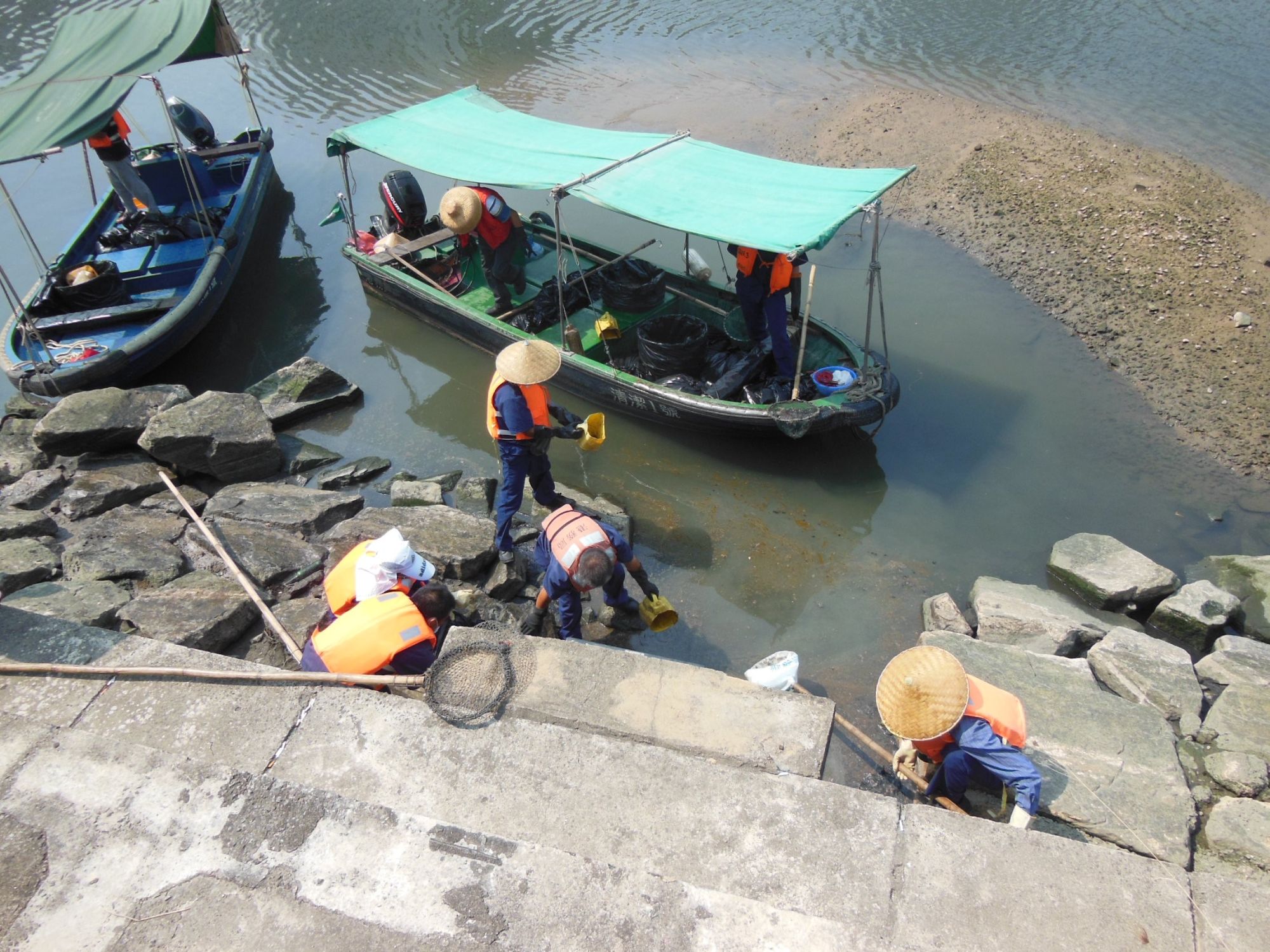 港務局人員不斷用工具收集現場油污,堵截了油污在河道擴散,但油污仍不時從渠口流出,至下午五時,港務局人員仍在現場繼續清理油污,預計清理工作仍需繼續進行。港務局人員和船隻亦會繼續在現場戒備,密切監察有關情況,防止油污擴散。此外,港務局人員於上周五(5日)在執行恆常的海岸巡查工作時,亦發現鴨涌河近跨工區位置有少量油污從渠口流出,並迅速完成了清理工作。