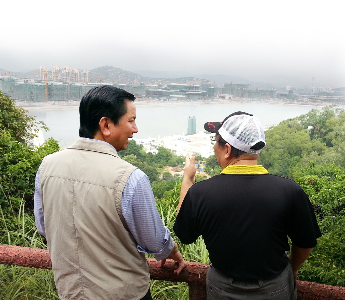 當日逾百名師生員工在張裕司長、趙偉校長等嘉賓的引領下邊走邊聊,氣氛輕鬆。民政總署更特別於沿途安排講解員介紹各種登山及植物知識。途中路經路環健康徑一處可遠眺新校園的觀景點時,各人均感興奮,紛紛拍照留念。不少澳大人目睹數十幢新校園建築物拔地而起的宏偉景象,均表示熱切期待新校園落成啟用的一刻。歷史系學生曾健欣覺得今次行山很好玩:「平時很少機會接觸大自然,今次機會很難得,可以舒展筋骨,呼吸清新的空氣,還可以與校長一起行山,最重要是可以遠距離見到新校園和河底隧道,新校園真的很大,心情非常興奮。」