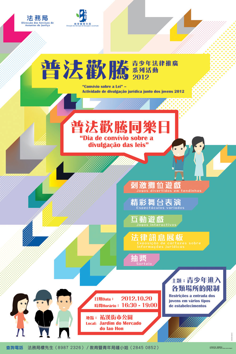 為增加青少年的法律知識及守法意識,法務局與教育暨青年局共同舉辦“普法歡騰 ── 青少年法律推廣系列活動”,今年的主題是“青少年進入各類場所的限制”。