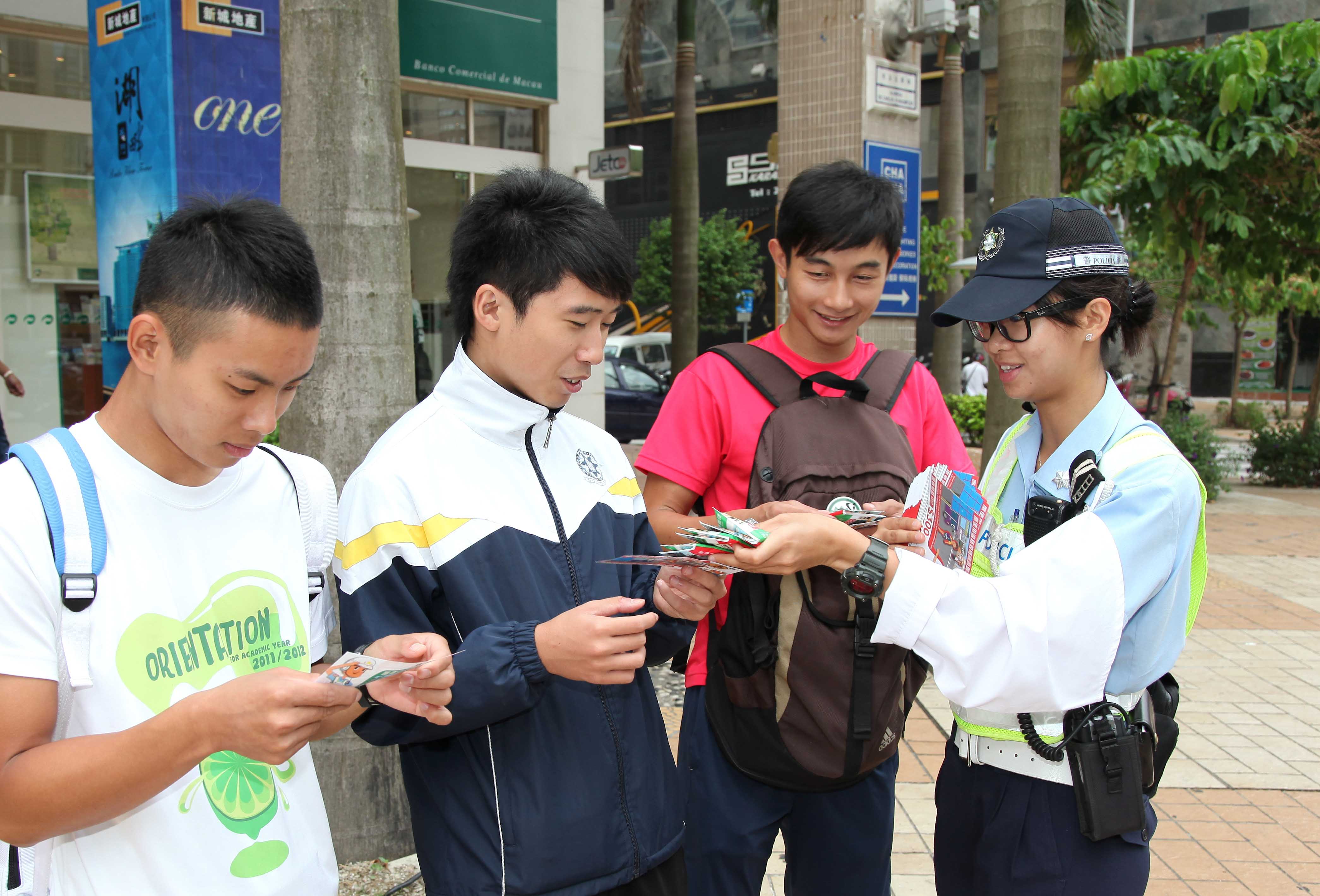 為了讓青少年自小養成良好的交通習慣,本局在今年總共向十多間學校近四千名學生進行了交通安全講座,亦向社會團體近六百名長者給予關懷指導。對老幼群體的宣教著重行人責任,如過馬路時必須看清路況、燈號、來車,遵守秩序,勿貪一時之快;過路時亦須顧己及人,強調使用過路設施。另外,今年初至五月份,本局一如既往派員協助交通事務局品牌活動《有禮加油站》的推行,冀以遊戲形式在幼小心靈栽下講禮貌、守秩序、保安全等良好公民意識。