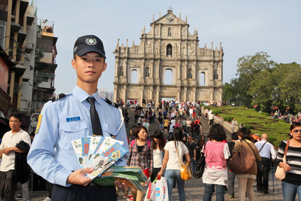 今天上午,本局公共關係處警司劉小俠連同澳門警務廳人員一行人到議事亭前地、板樟堂及大三巴牌坊一帶進行防扒及店鋪防盜宣傳活動。期間,宣傳隊向居民及遊客派發 “提防小手”小冊子,講解常見的犯罪手法,並即場對財物外露的人士作出溫馨提示,讓其了解正確保管財物的方法;亦向周邊商鋪進行防店鋪盜竊宣傳,提醒店員賊人的作案手法,特別在人多擠迫的時候提高警覺,以及適時提醒顧客注意個人財物安全。