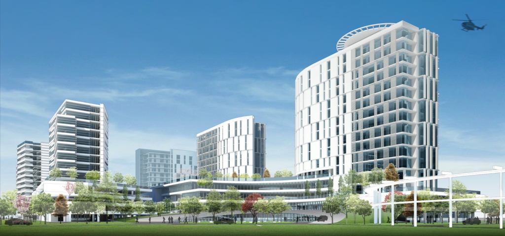 綜合醫院大樓是離島醫療綜合體的中心主體部分,包括綜合醫院及急救中心,實行門診、急診分流佈置。綜合醫院將設超過400張住院病床,提供多項臨床專科服務,並將設核醫學、放射治療中心、移植中心及日間診療中心。急救中心共提供100張急症病床,部份病房能在短時間內升級為傳染病隔離、治療病房。急救中心頂層則設有緊急應變指揮中心,處理災難事故。