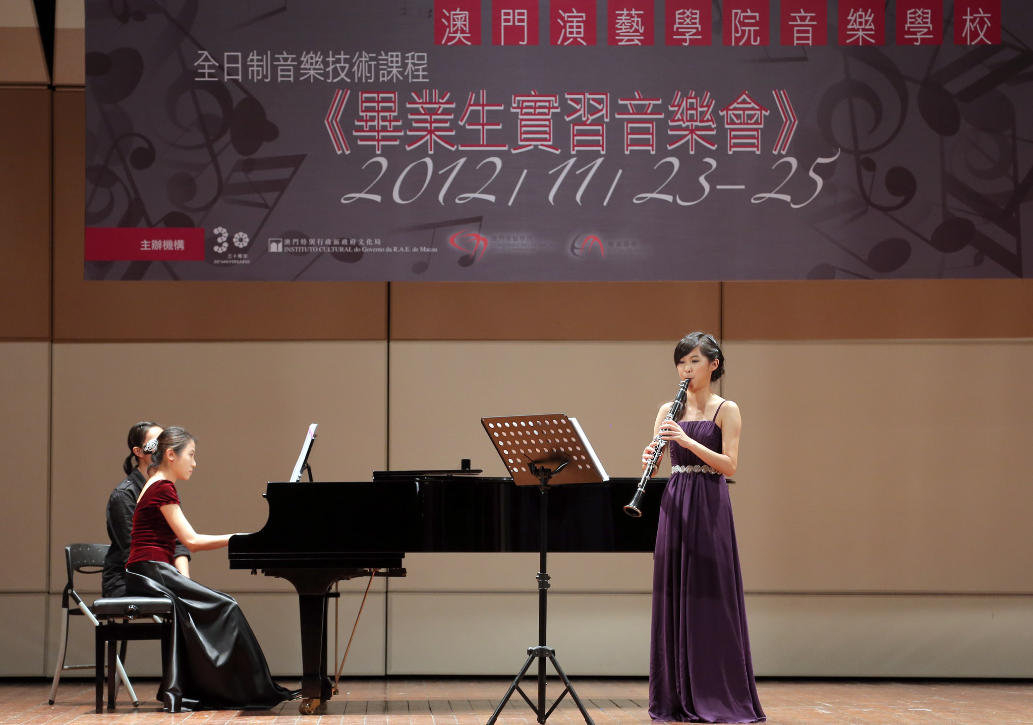 文化局澳門演藝學院音樂學校開辦的全日制“音樂技術課程”,應屆高三畢業生於早前(十一月二十三至二十五日)在崗頂劇院舉辦《畢業生實習音樂會》,三天共六場音樂會分別由十八位準高中畢業生擔綱演出,為觀眾呈獻他們努力學習的成果。