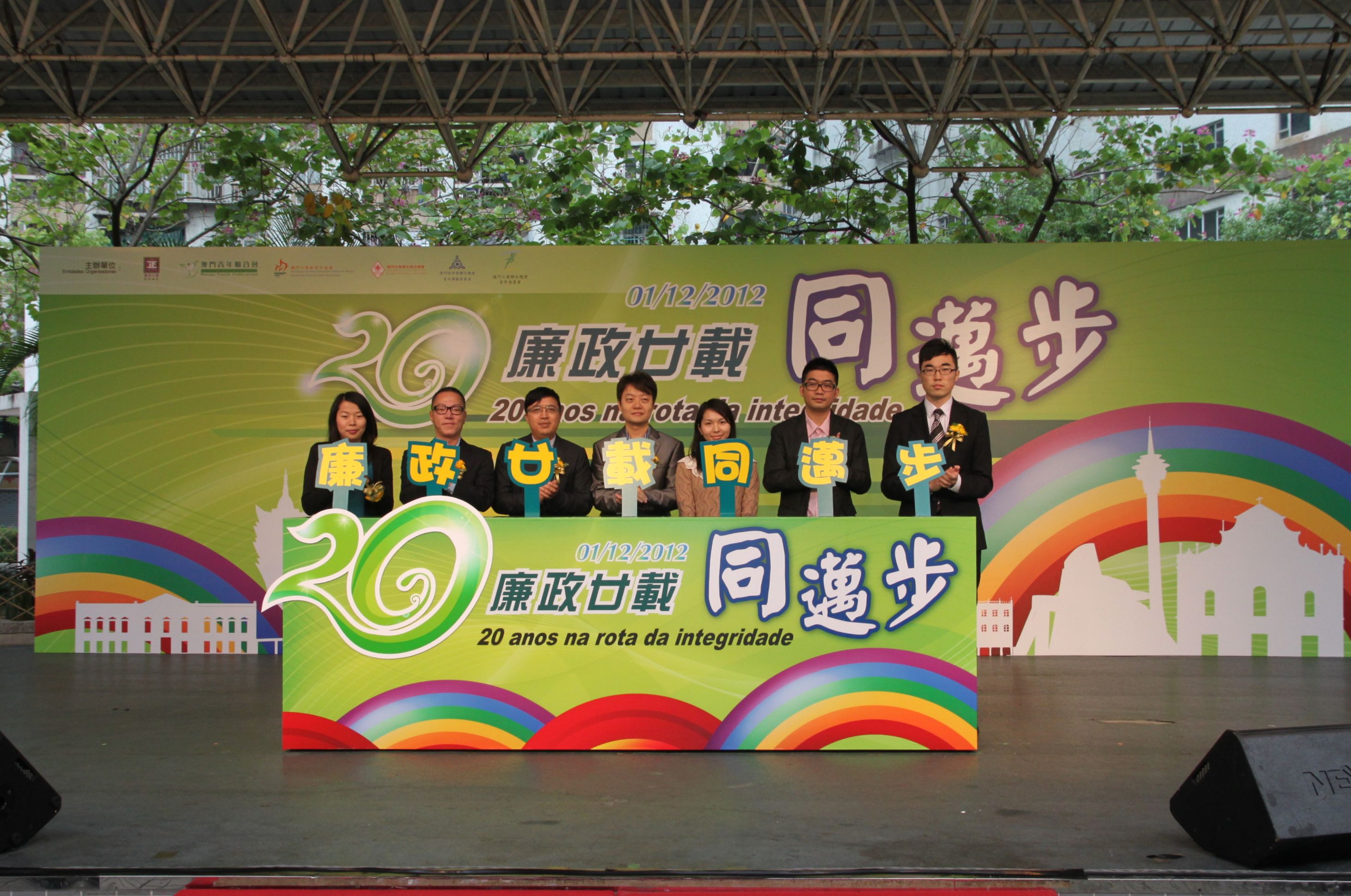 廉政公署與澳門青年聯合會、澳門工會聯合總會青年委員會、澳門中華新青年協會、澳門中華學生聯合總會及澳門街坊會聯合總會青年事務委員會5個青少年團體,於12月1日(星期六)下午假祐漢街市公園合辦「廉政廿載同邁步」綜藝活動暨「齊讓廉潔夢飛翔」四格漫畫比賽頒奬典禮,持續向市民大眾宣揚廉潔誠信的訊息。廉政公署助理專員關冠雄、廉政專員辦公室主任沈偉強、澳門青年聯合會會長馬志毅、澳門工會聯合總會青年委員會副主任鄭穎殷、街總青年事務委員會副主任黃國威、中華新青年協會副理事長黃培梅以及澳門中華學生聯合總會會員代表大會副主席邱天主持了開幕儀式。