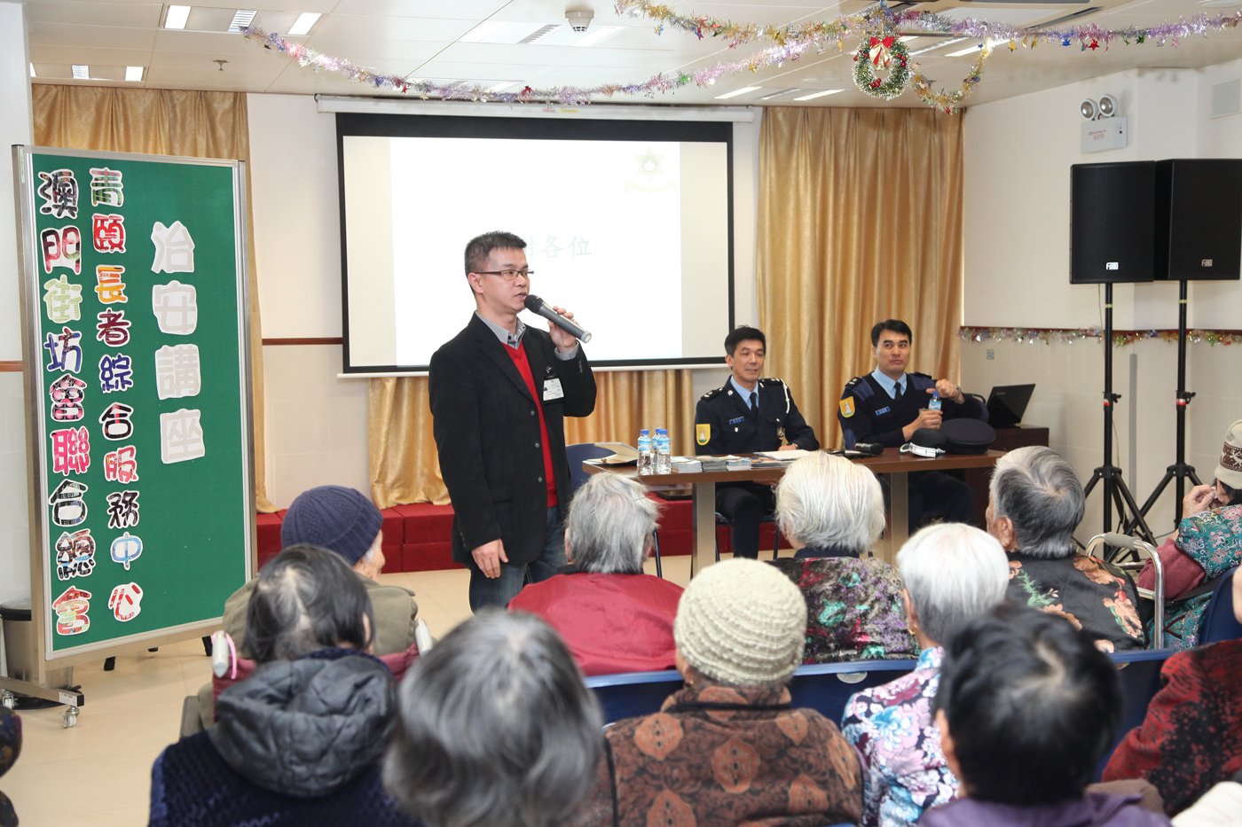 由十二月開始至農曆年前,治安警察局主動邀約社團、長者中心、坊會等合辦十多項專題講座,期望防患未然,減低罪案發生所帶來的損害及社會成本。講座主題圍繞《老人防騙》、《家居防盜》、《大廈保安防罪》等,對象覆蓋長者、青少年、管理員、市民大眾,預計受眾近一千二百人。警方希望市民提升意識,遇事保持冷靜並盡快報警,良好的警民合作能有效地把賊人繩之於法,避免更多人受害。