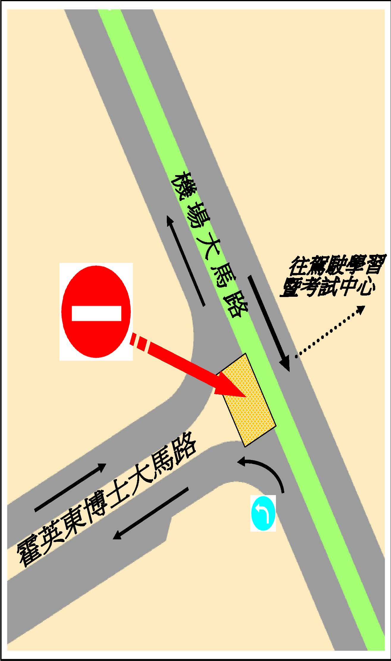 鑑於是次工程範圍為各類車輛駕駛學習和考試之路段,因此,駕駛學習和考試路線亦將臨時繞道霍英東博士大馬路。