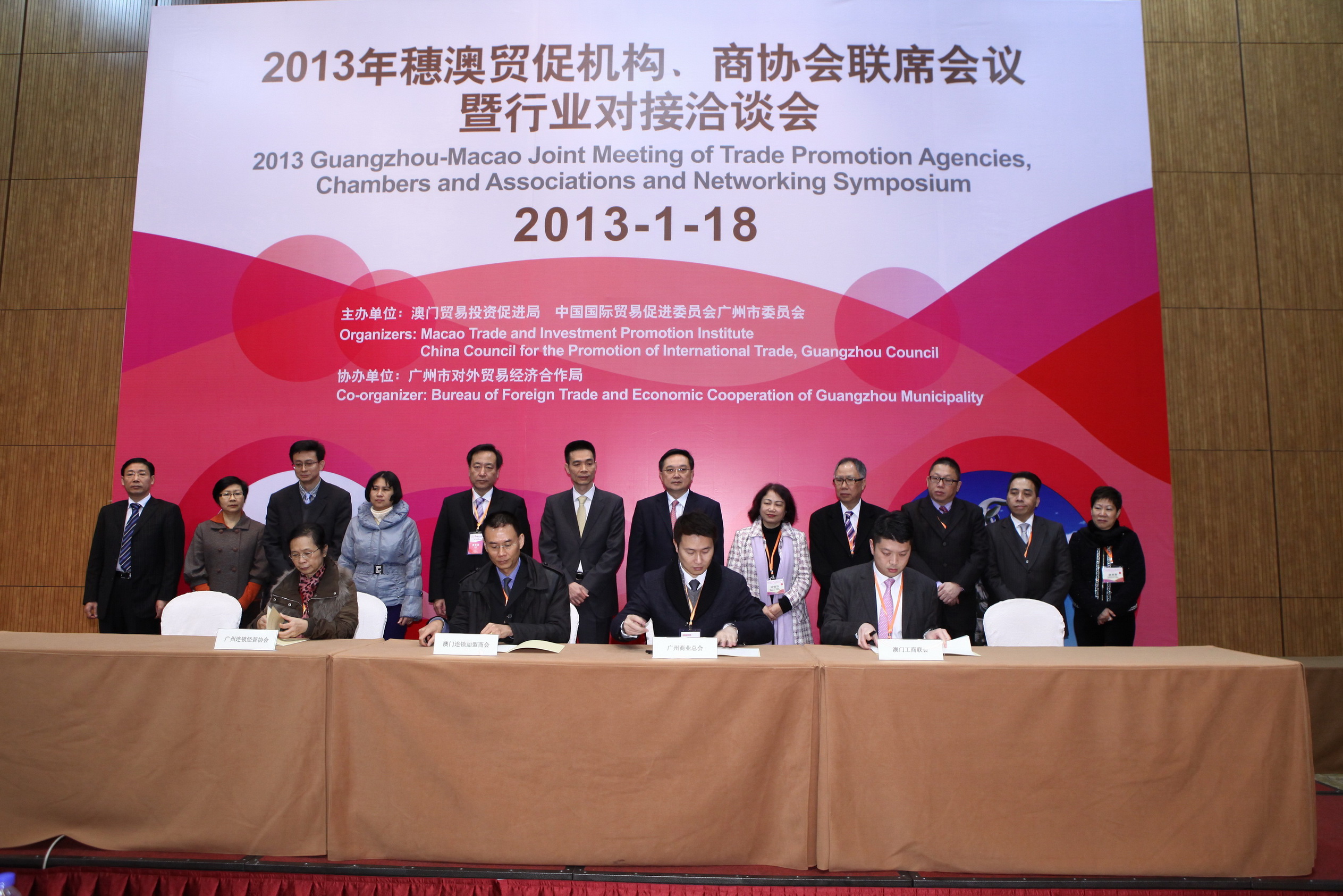 於活動期間,澳門貿易投資促進局與中國國際貿易促進委員會廣州市委員會將繼續共同舉辦 “2013年穗澳貿促機構、商協會聯席會議暨行業對接洽談會”。廣州貿促會會長曾凱章、澳門貿易投資促進局主席張祖榮代表兩地商界在會上致辭,以及有來自廣州、澳門貿促機構、商協會和企業代表共130多人參加活動。對接活動涉及的行業包括︰進出口貿易、會展、動漫文化創意產業、商業、食品、金融、軟件行業、航空快遞、連鎖經營、餐飲、廣告、環保、節能、房地產、建造業、家具行業、物流行業、紡織服裝、機械裝備、包裝印藝、玩具禮品、酒店用品、汽車配件、電子、美容美發、高新技術等行業貿促機構和商協會,所屬會員企業數超過1.5萬家。雙方對口機構在會上就新的一年推進穗澳貿促機構、商協會優勢互補和務實合作方面,明確了2013年穗澳兩地在服務業方面的五大合作內容,包括︰會展業合作;動漫、文化創意產業合作;進出口貿易促進合作;推動商業合作,及推進文化飲食項目的合作。