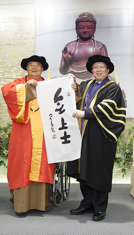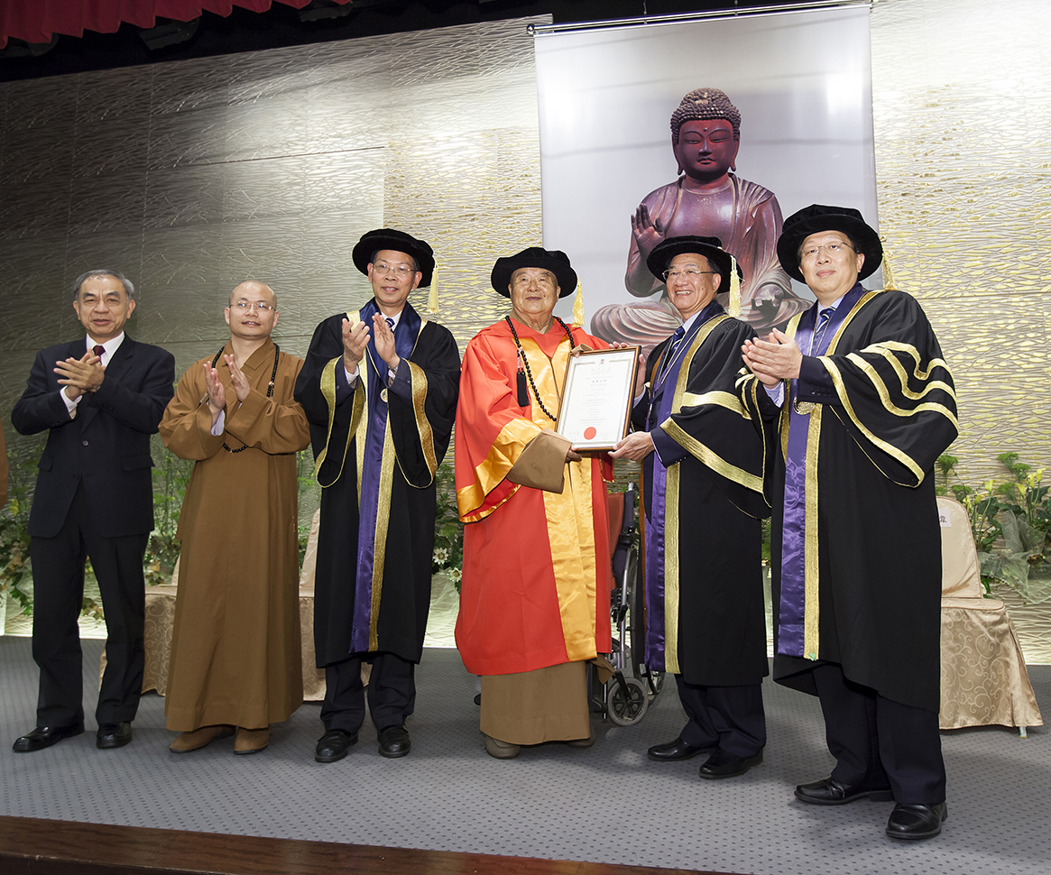 澳門大學昨(21)日於台灣佛光山舉行榮譽博士學位頒授典禮,澳大校董會主席謝志偉代表澳大校監行政長官崔世安向佛光山開山宗長星雲大師頒授榮譽人文學博士學位,以表彰他於文化和社會事務上的卓越貢獻。澳大校董會榮譽學位及榮譽名銜委員會主席李沛霖、校長趙偉、副校長(學生事務)程海東、社會科學及人文學院院長郝雨凡、教務長彭執中,以及來自各地的眾多嘉賓、弟子出席見證並祝賀大師獲頒榮譽博士學位。