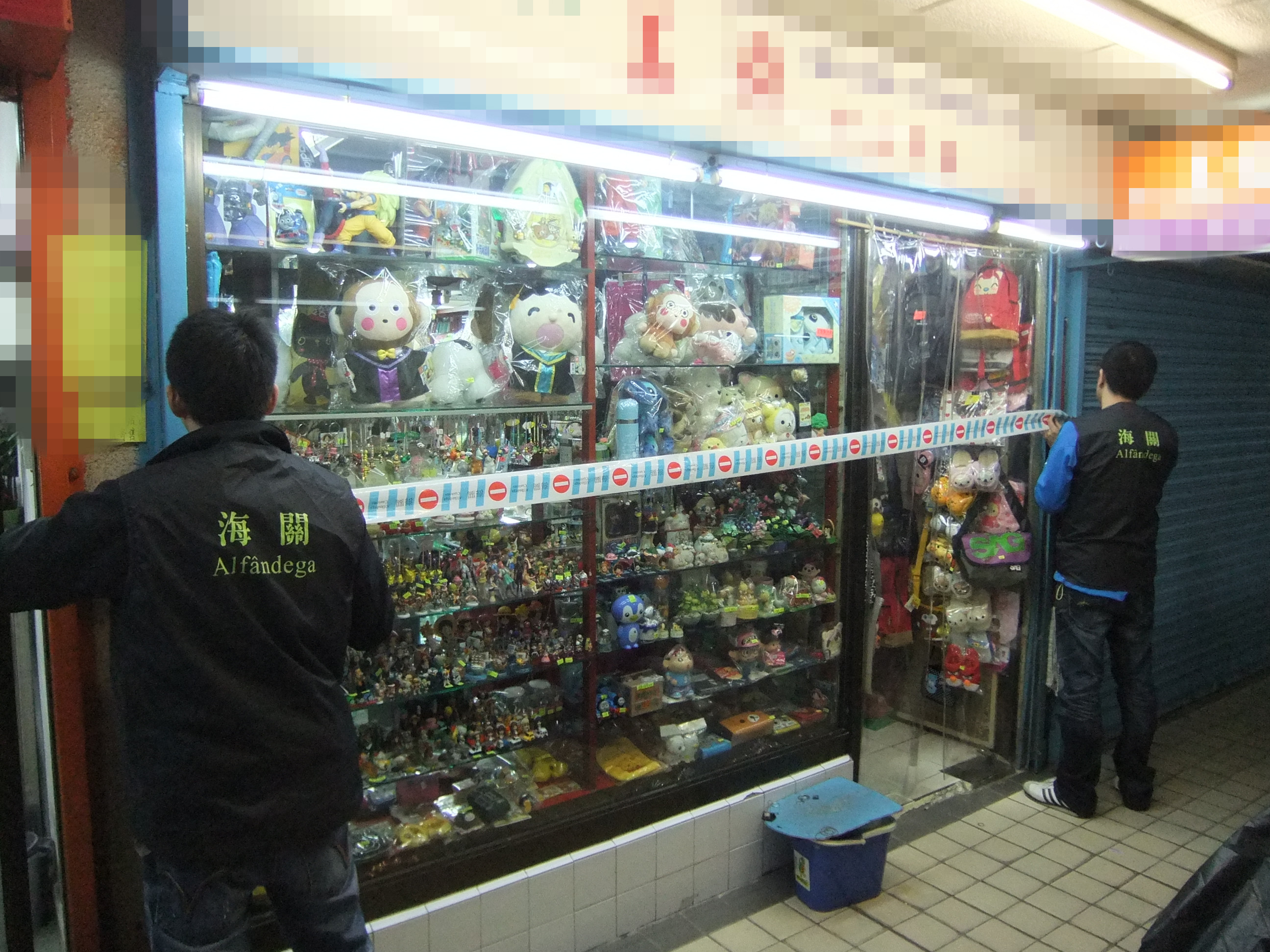 於本月二十四日,海關偵查人員對目標店舖採取稽查行動,行動中共緝獲偽冒物品二百零九件。包括「HELLO KITTY」、「MY MELODY」、「LITTLE TWINSTARS」、「POCHACCO」、「KEROKEROKEROPPI」、「BAD BADTZ-MARU」及「CINNAMOROLL」等多個卡通人物品牌,當中有室內電話、電話保護套、手錶、飾物、毛公仔及文具等等,物品估值約八千澳門元。