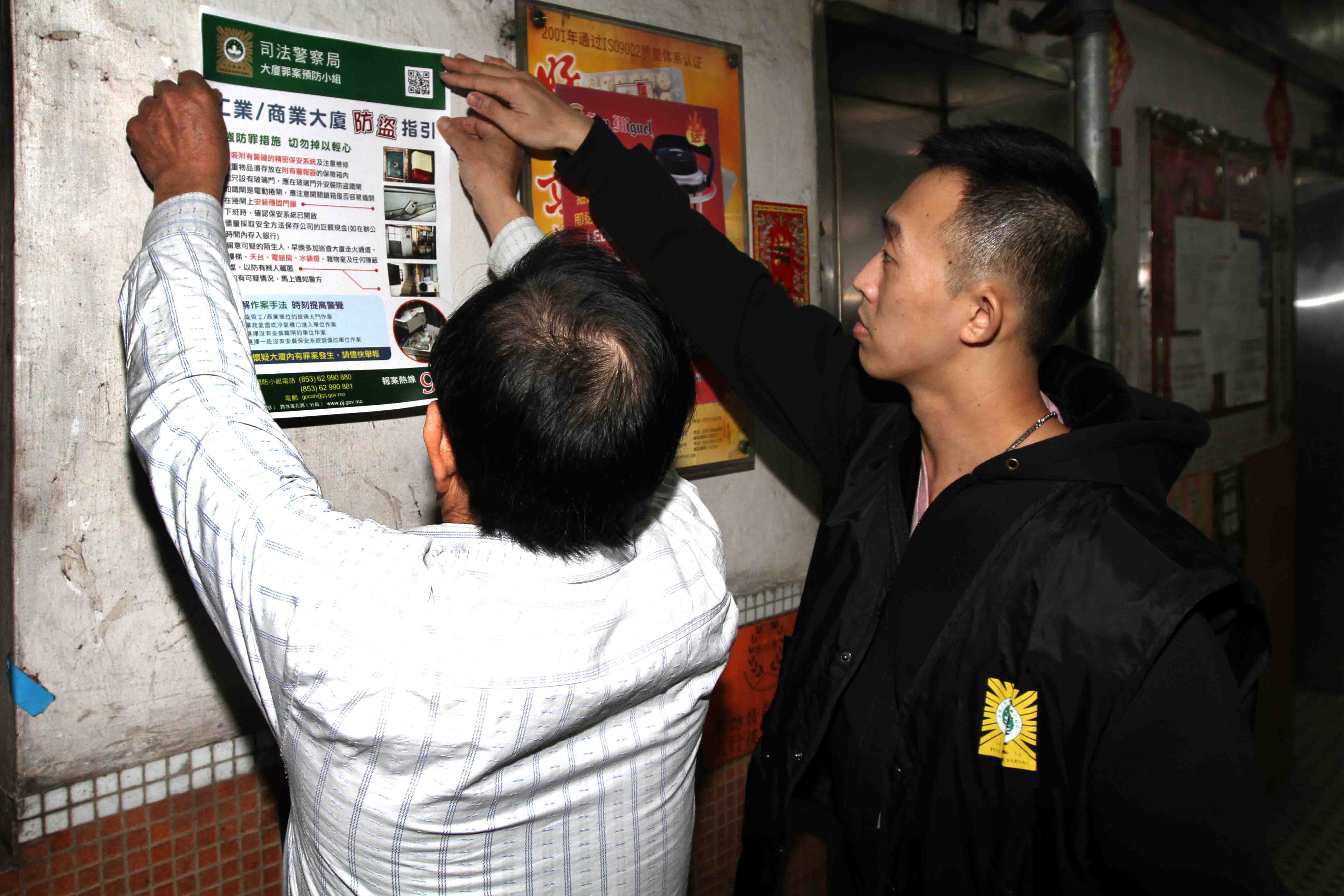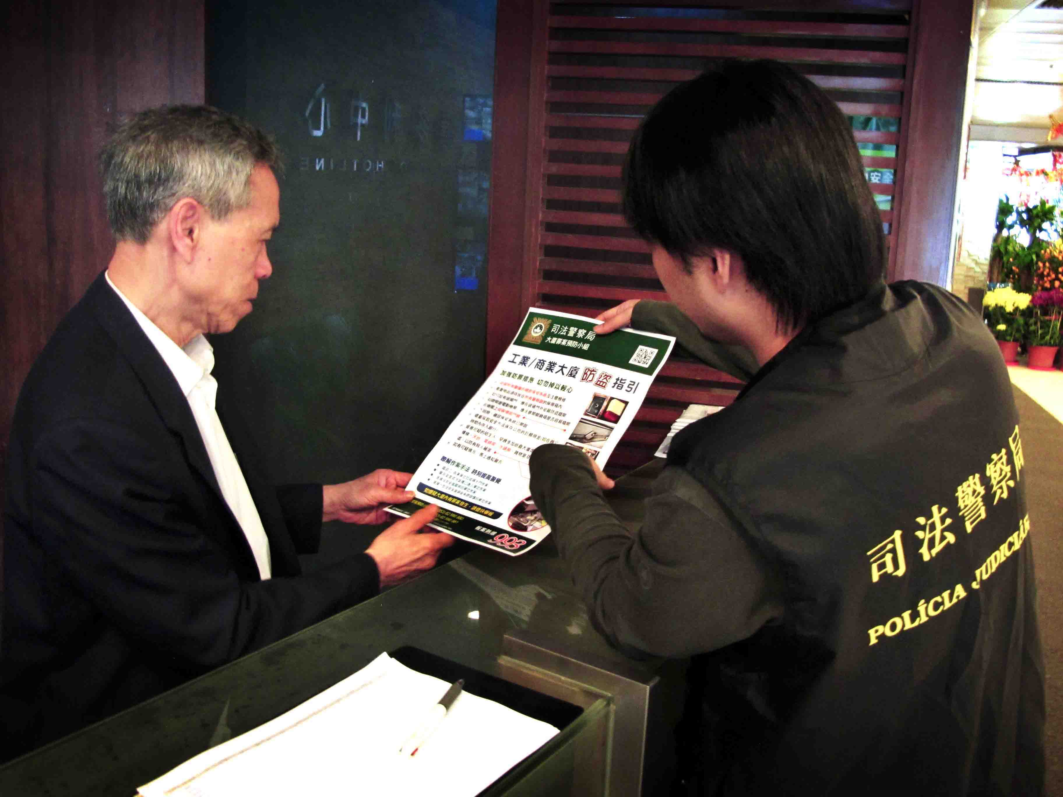 農曆新年臨近,不少商業機構、商舖陸續放年假而一連多天暫停營業,在此期間,賊人可能四出伺機作案,同時,因應去年商業大廈盜竊案件趨增,為提醒商戶、物業管理公司和管理員及早作好防範,以減少罪案發生的機會,司法警察局於春節長假期前夕展開商業及工業大廈防罪宣傳活動。