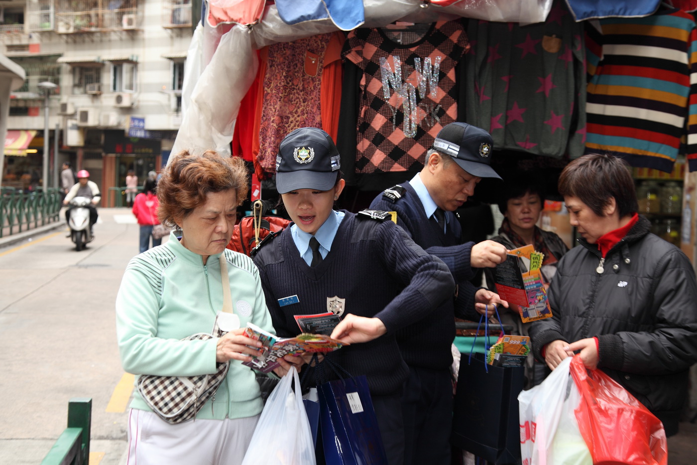 宣傳隊首先到區內生活市販區接觸商戶、市民等,向其派發“警民合作”、“慎防門戶”宣傳單張及滅罪守法主題的紀念品,亦到多幢大廈、商鋪張貼防盜海報,警員耐心向市民講解防罪滅罪要領,並提醒區內注意治安情況,與治安警察局保持緊密聯繫,鼓勵警民合作,共建安全社區環境。