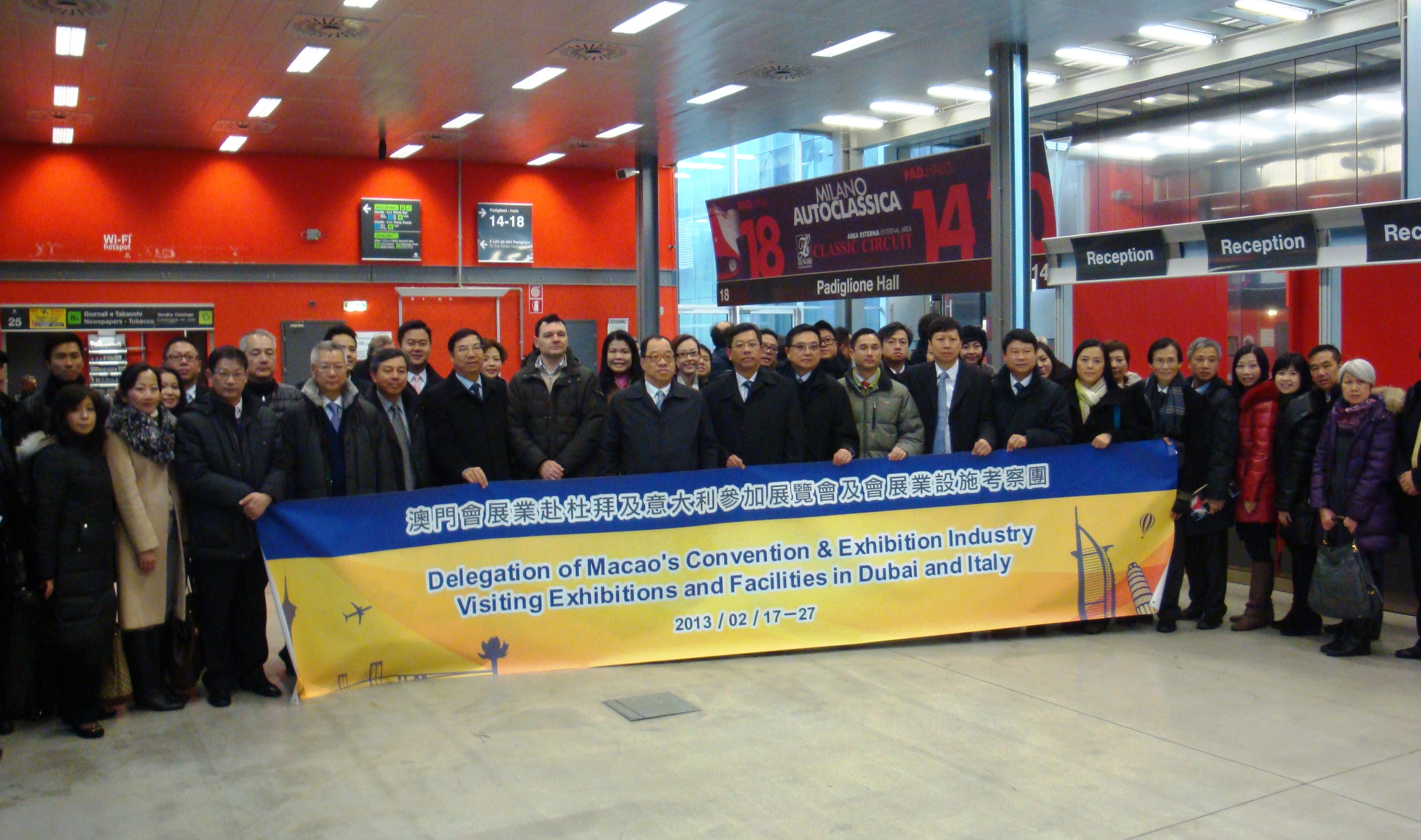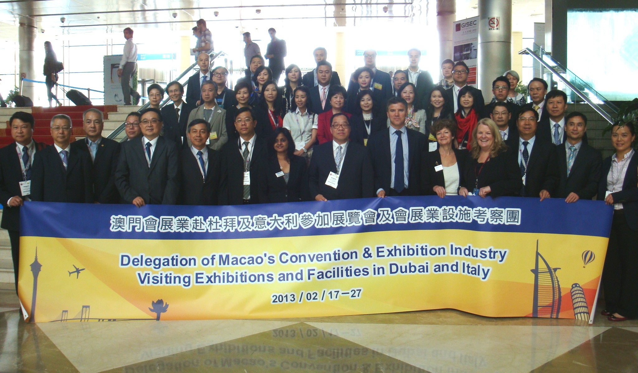 為推動澳門會展業的持續發展,並促進會展業與海外會展名城的交流及學習,會展業發展委員會主席譚伯源司長率領各委員及會展業界代表共51人,於本年2月17日至27日期間,前往杜拜及意大利米蘭等著名會展城市,考察當地的會展中心及相關設施,並重點參觀於杜拜舉行的“中東國際太陽能展覽會” (Solar Middle East 2013) 以及於米蘭舉行的“米蘭老爺車展” (Milano Auto Classica 2013)。
