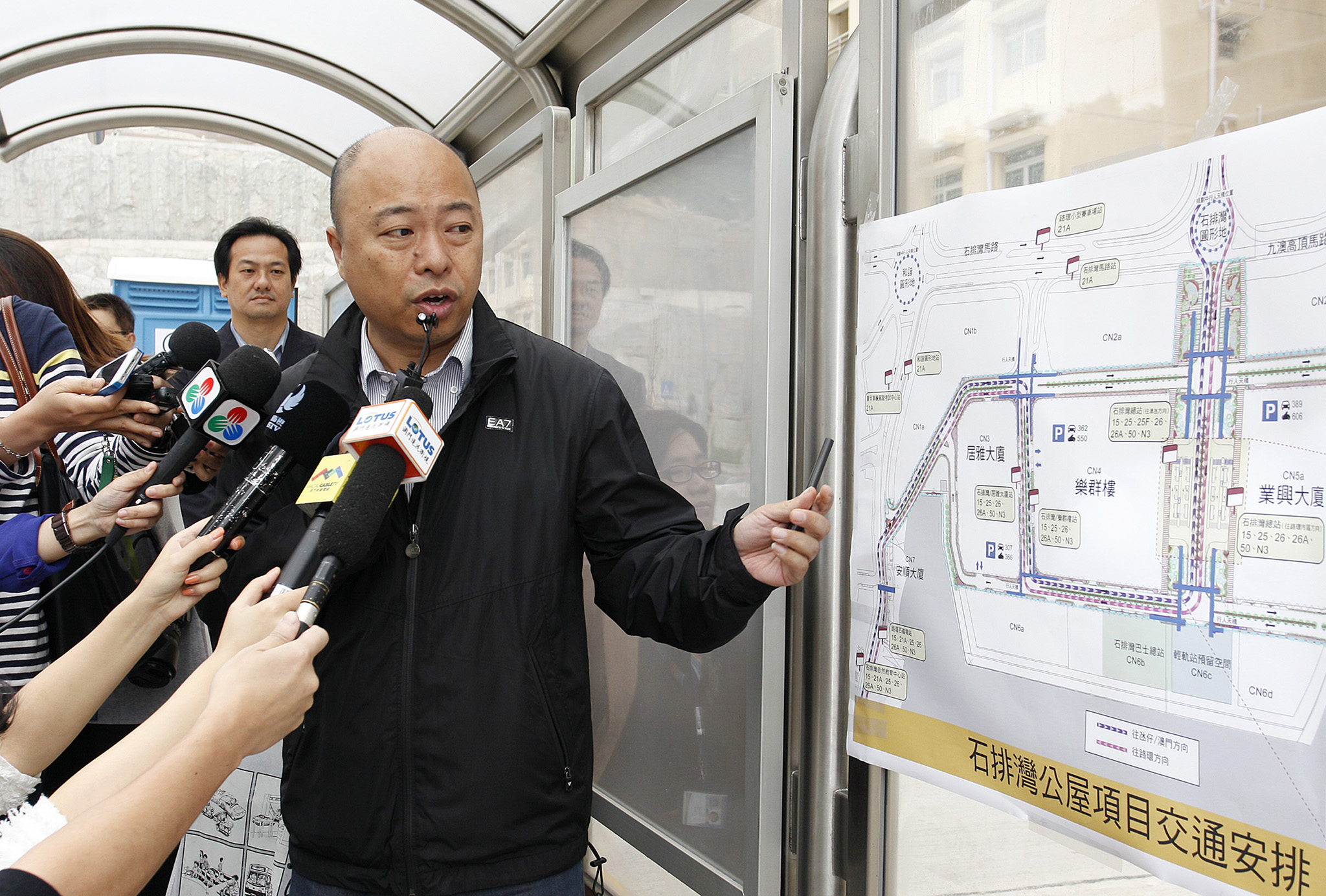 土地工務運輸局基礎建設廳廳長郭子昌、交通事務局運輸管理處處長盧毅華、能源業發展辦公室顧問高級技術員李鑄新,今日(25日)於石排灣巴士總站,向傳媒介紹石排灣公屋配套設施的準備情況。