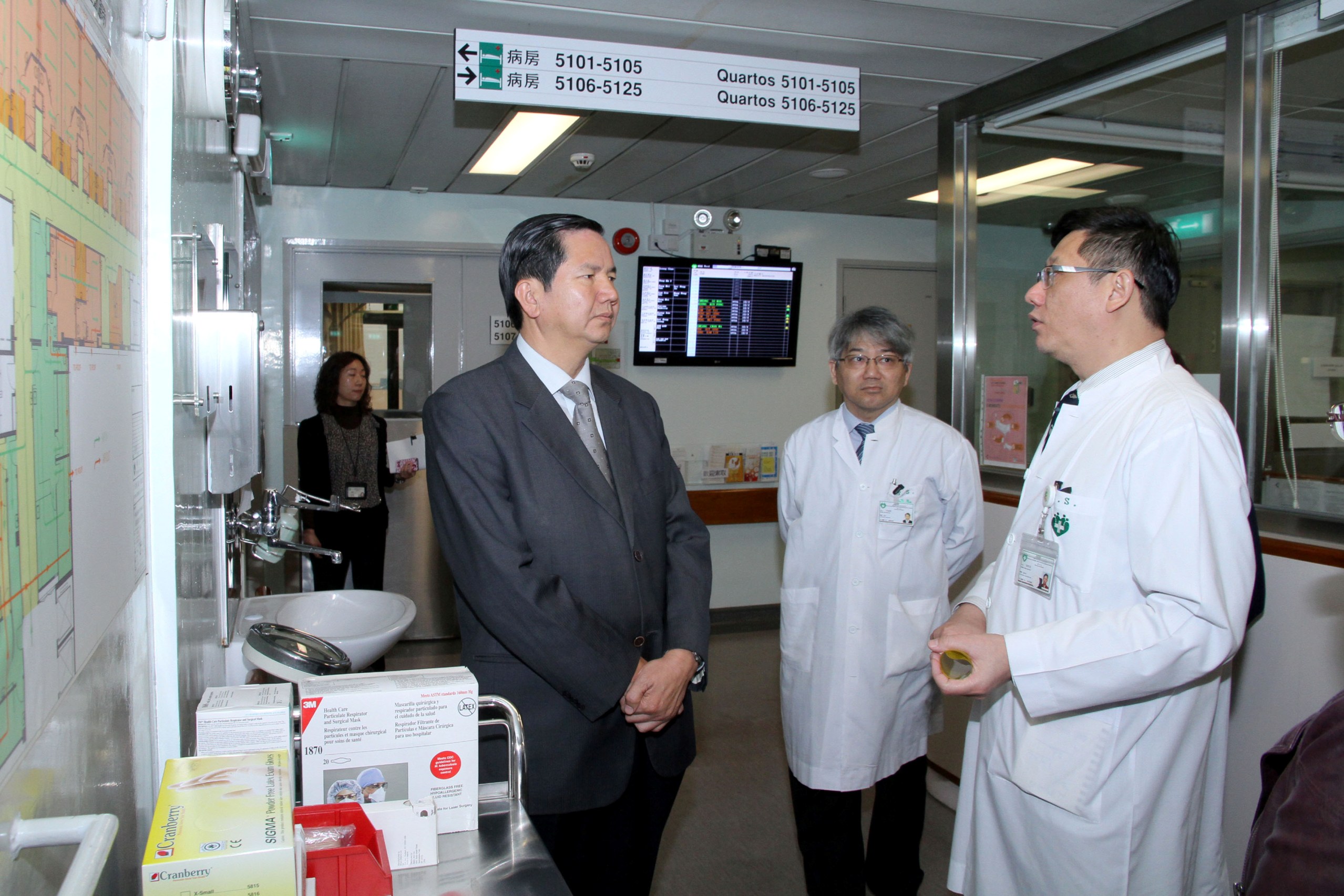 因應中東地區的新型冠狀病毒和內地H7N9禽流感疫情的發展,社會文化司司長張裕在衛生局李展潤局長、仁伯爵綜合醫院院長陳惟蒨等人員的陪同下,巡視了仁伯爵綜合醫院特別急診區和傳染病隔離病區,了解急診分流、懷疑染病者快速測試、確診者隔離的分流措施、處理流程、相應設備、物資及人手調配等安排。