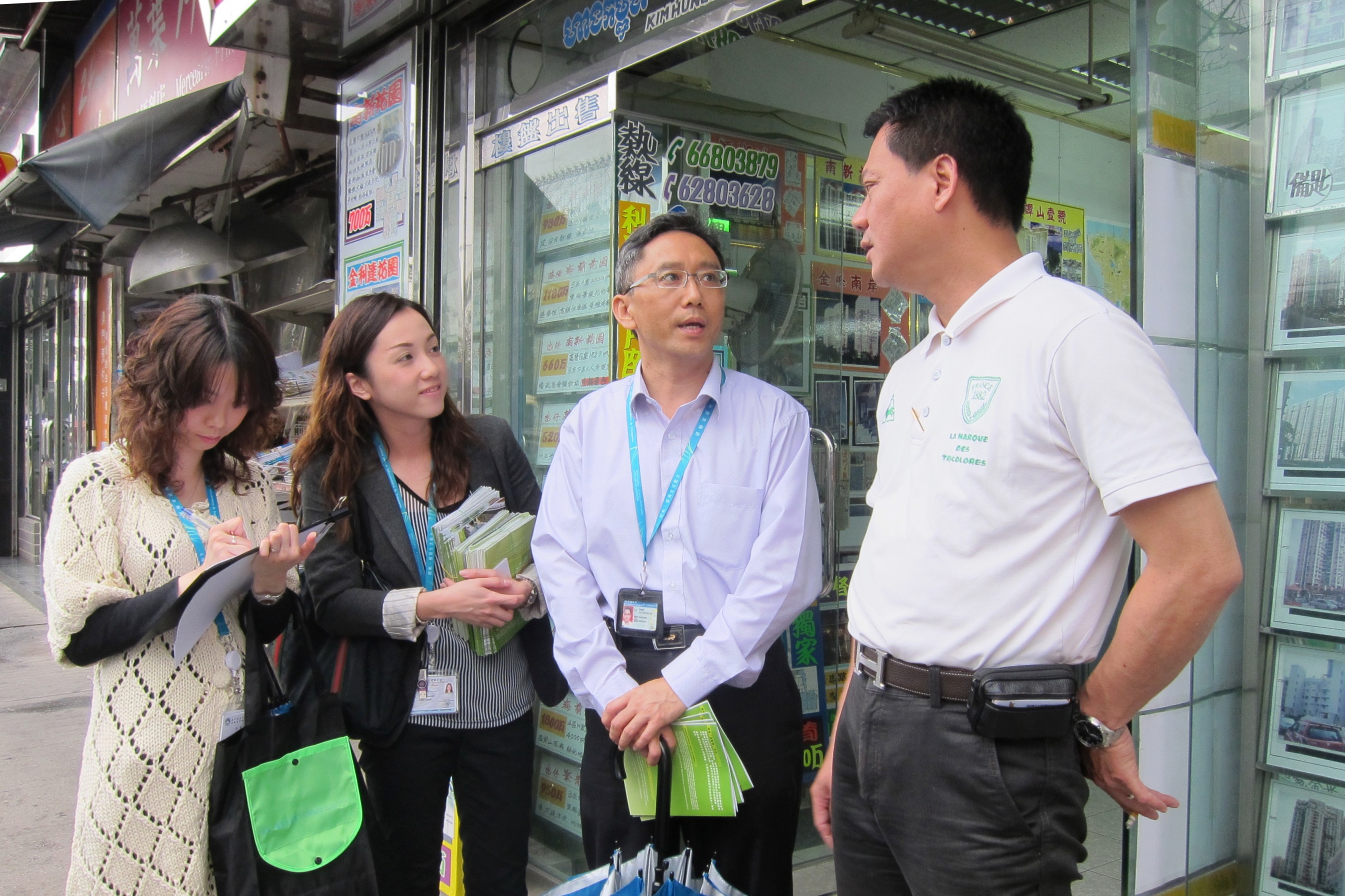 柯維納馬路為氹仔區的主要幹道之一,也是輕軌氹仔段工程其中一個重點路段,為配合工程開展,建設單位已分階段進行樁基工地的圍封。過程中,政府各部門、相關承建單位及沿線機構進行了大量協調和溝通工作,務求將交通影響盡量減低。隨著架設正式圍板的工作於三至四月期間逐步完成,為了進一步了解社區對工地圍封工作的意見,運輸基建辦公室的地區溝通工作不停步,副主任何蔣祺於上周三(17日)帶同輕軌氹仔聯絡站人員再次走到柯維納馬路聽取商戶意見。