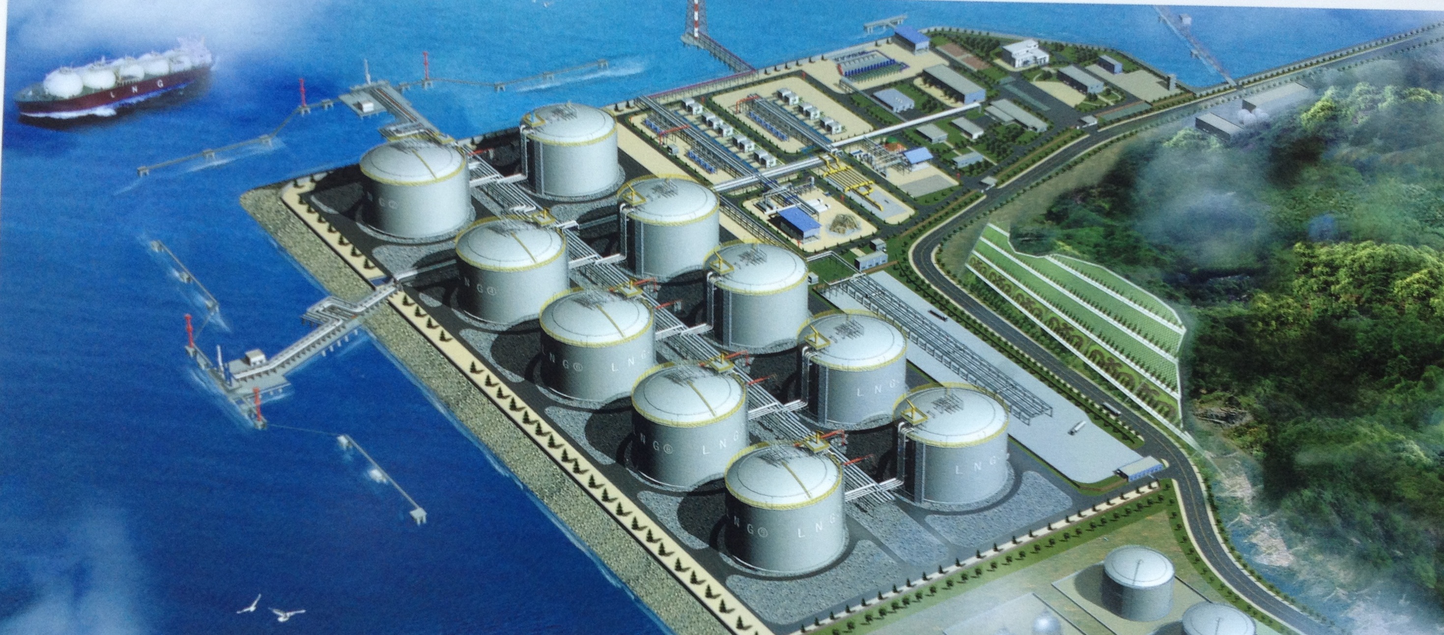 據會上了解,珠海LNG接收站項目的建設和運營公司是廣東珠海金灣液化天然氣公司,並由中海氣電、廣東粵電、和廣州發展等共8家股東組成。珠海LNG接收站位處廣東省珠海市西部的高欄港經濟開發區平排山,距離澳門市區50公里,占地40.6公頃,主要由LNG接收站及碼頭組成,功能為進口液化天然氣(LNG)的接收、儲存、再氣化後向下游用戶供應。建設規模分為一期的每年350萬噸處理能力、二期的750萬噸、中期的1400萬噸,及遠期最終項目建設規模為2000萬噸。
