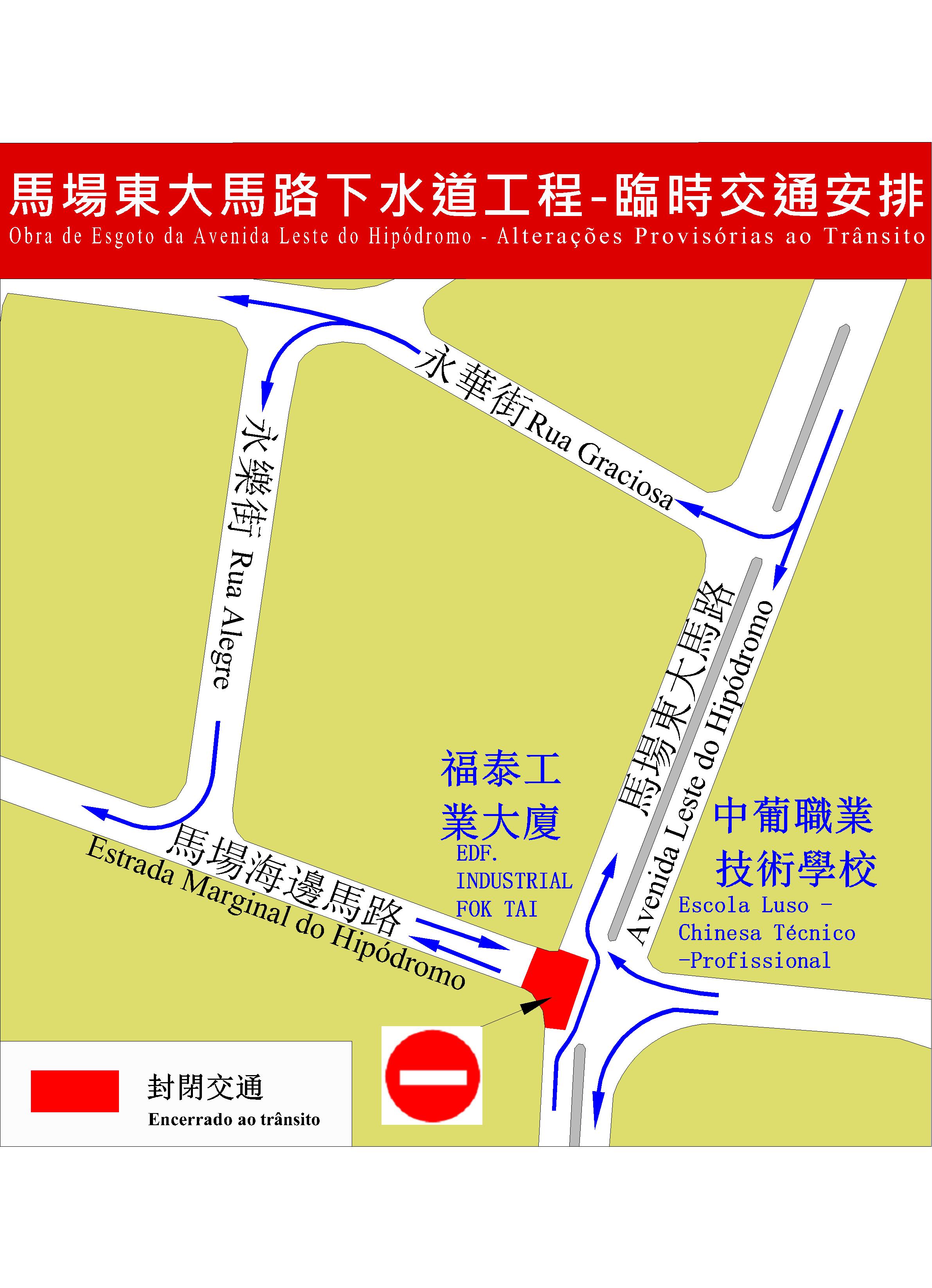 配合民政總署開展下水道整治工程,馬場東大馬路與馬場海邊馬路交界將於本月11日(周六)上午10時起封閉交通並禁止泊車,而介乎馬路東大馬路與永樂街之間的一段馬場海邊馬路亦臨時改為無出口道路,為期20日。