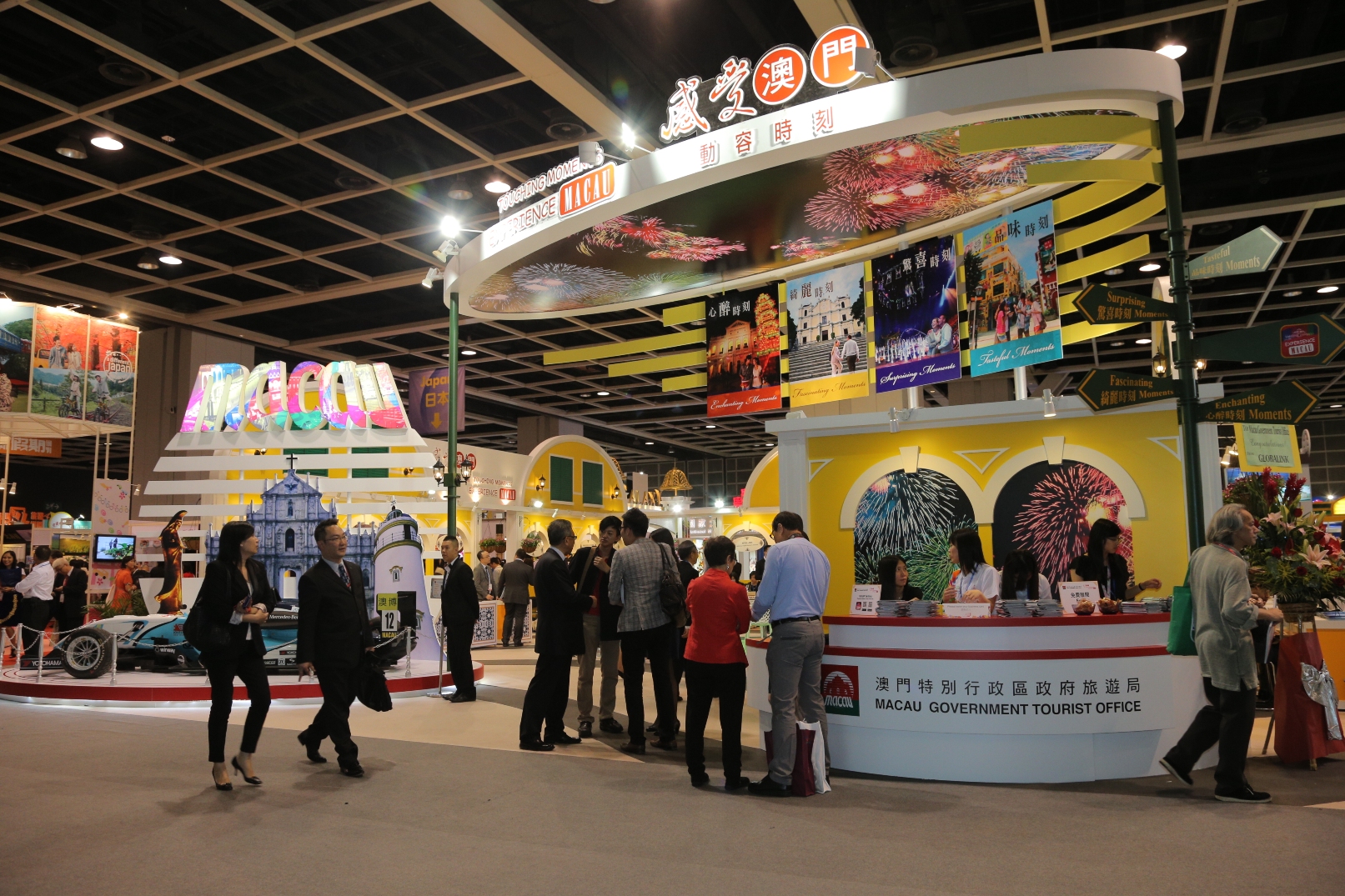 今年,旅遊局以「感受澳門 動容時刻」的宣傳主題作為展位設計概念,以傳統葡式建築設計突顯澳門逾四百年的中西文化交融特點。為迎接今年兩項亮點盛事 ─ 第25屆澳門國際煙花比賽匯演及第60屆澳門格蘭披治大賽車,旅遊局特於展位中以煙花天幕作為裝飾,並展示2011年三級方程式賽事冠軍賽車,讓參觀者感受澳門盛事氣氛。